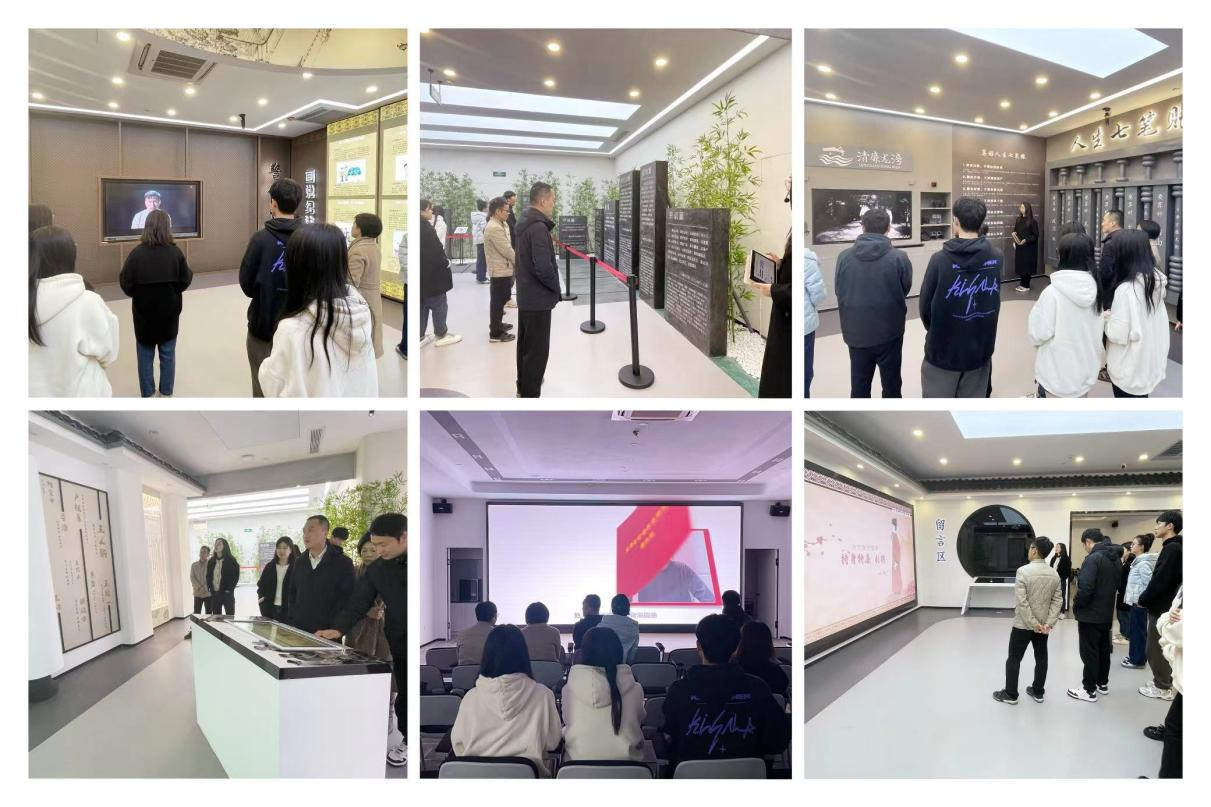 在廉政教育基地讲解员的引导下,大家先后参观了“全面从严治党”“警钟长鸣”“清廉龙湾”“不忘初心”四大篇章,并认真听取讲解、深入交流探讨。作为展馆开篇内容的,是被各种字体的“廉”字围绕的红字“反腐败斗争永远在路上”,显眼夺目,催人警醒。接着,基地以立体的警示影展、鲜活的贪腐案例、震撼的案情文字、先贤的倡廉家书,现场声光电新媒体“沉浸式”体验,让党员教职工们身临其境感受廉政教育氛围。