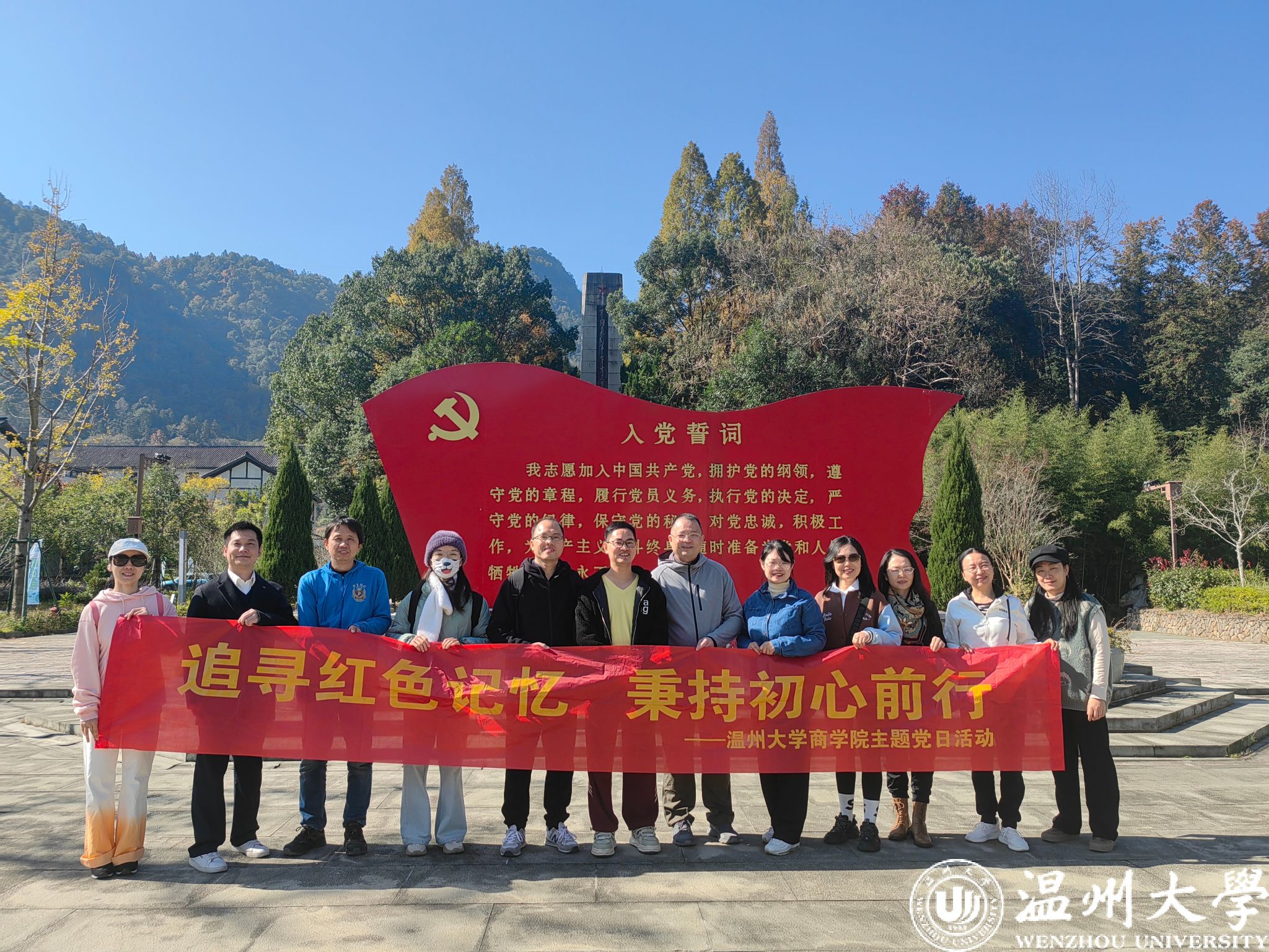 参观结束后,全体成员在烈士纪念碑前整齐列队,庄严肃立,向烈士敬献花篮,鞠躬默哀,表达对烈士的深切缅怀和崇高敬意。随后,党员们面对党旗,重温入党誓词,彰显了大家不忘初心、牢记使命,继承先烈遗志,为共产主义事奋斗终生的坚定决心。