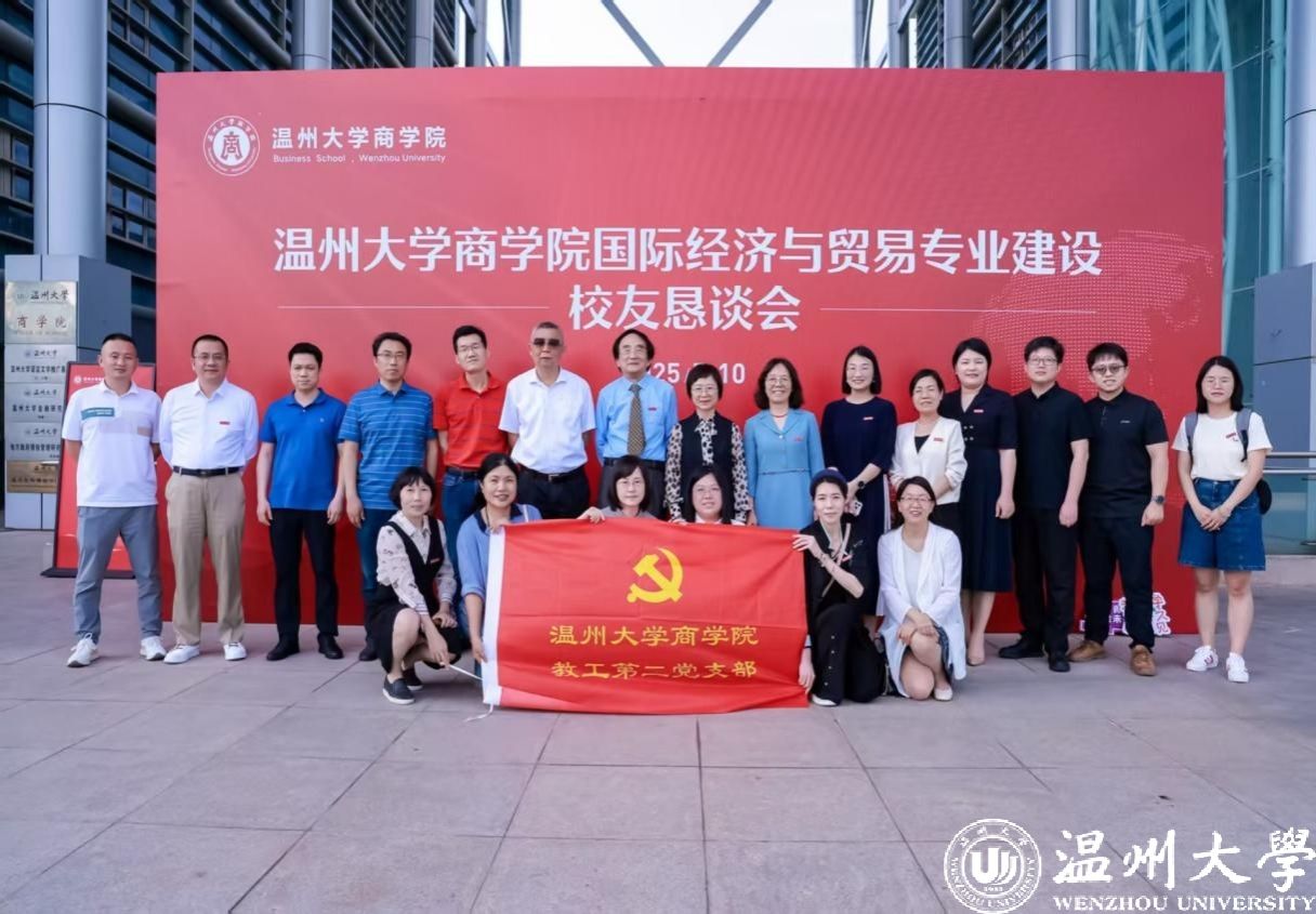 2025年5月10日,在3044永利教工第二党支部与国贸系老师的精心组织下,国际经济与贸易专业建设员工恳谈会于公司A226仲辉商道讲堂隆重举行。本次会议以“党建引领专业发展,员工协同育人创新”为主题,汇聚了3044永利集团、浙江省商务厅综合发展处、温州市商务局等集团、政府代表,鹿城区、瓯海区商务局及多家商协会领导,国贸系老教师代表、员工企业家、在校师生代表等120余人。