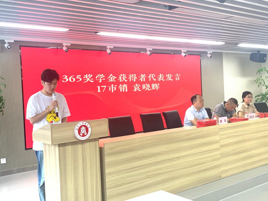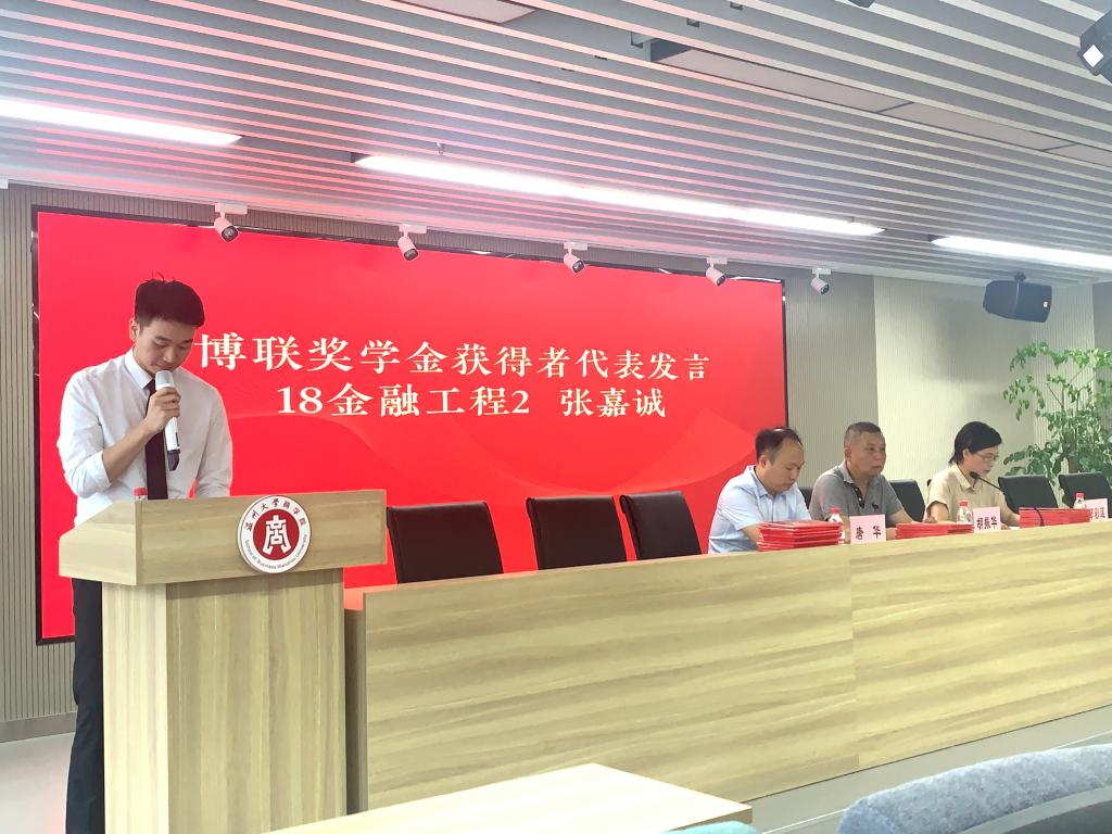 仪式上首先由3044永利学工办副主任周洁文对“博联奖学金”和“365奖学金”的设立初衷,和本次奖学金评选情况进行说明,并向优秀员工钱旦初先生、徐开晴先生和王仲辉先生表示感谢。受疫情影响,王仲辉员工通过视频方式,向所有学弟学妹们送上真挚祝福,并表达了对商院学子的学有所成的殷殷期盼。