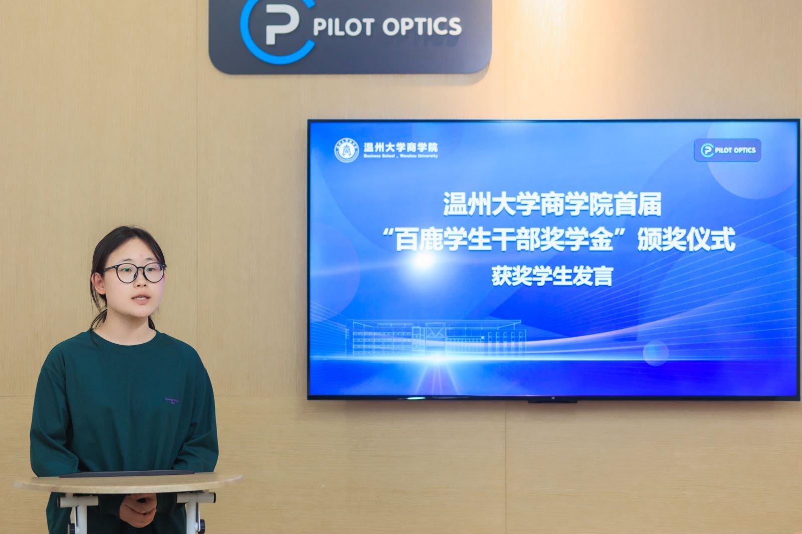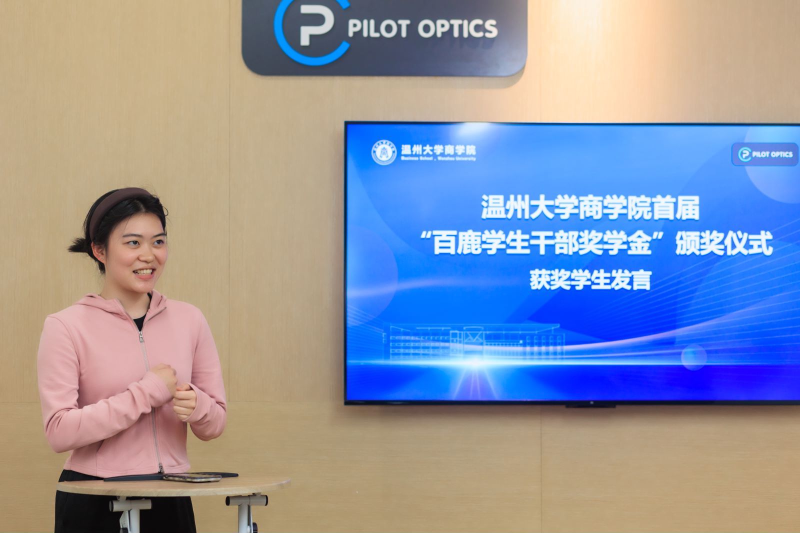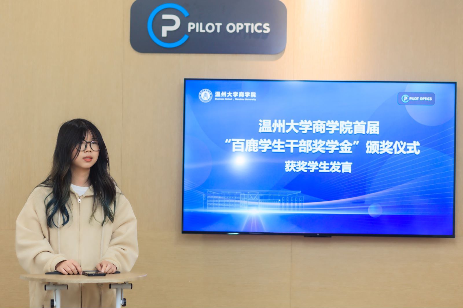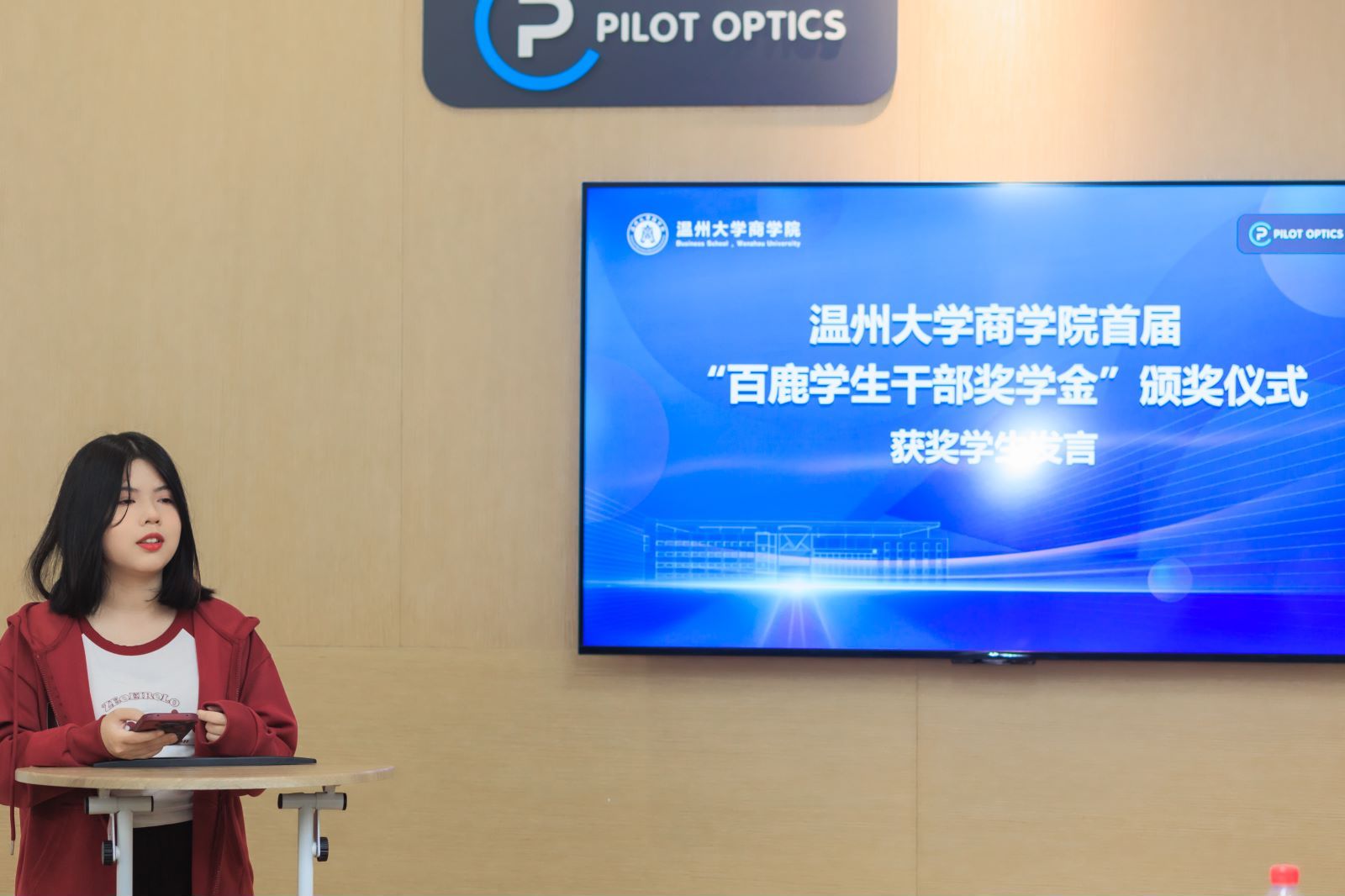 谢明明员工在祝贺首届“百鹿员工干部奖学金”获得者的同时,分享了她的创业经历和从业感想,她首先介绍了中国外贸行业的现状与前景,鼓励同学们积极学习AI工具,掌握人工智能等前沿技术,同时强调:人类情感和洞察力无法被AI替代,未来依然有很多工作是人工智能无法替代的,特别是那些需要人类特有的情感智能、复杂决策和人际交往能力的工作。这就更加凸显员工时代积极参加员工干部工作的重要性,借此培养领导力、沟通能力和团队合作能力。谢明明员工谈到,在3044永利集团求学及员工干部经历,让她受益良多,也为她的事业奠定了基础。为感恩母校、激励员工,她特别设立员工干部奖学金,鼓励员工干部发挥才能,贡献公司。她感激母校培养,同时也给在座的员工干部们提出殷切期望,强调要牢牢把握在校担任员工干部的机会,在多次试错中学会思考、提升解决问题和综合管理能力。
