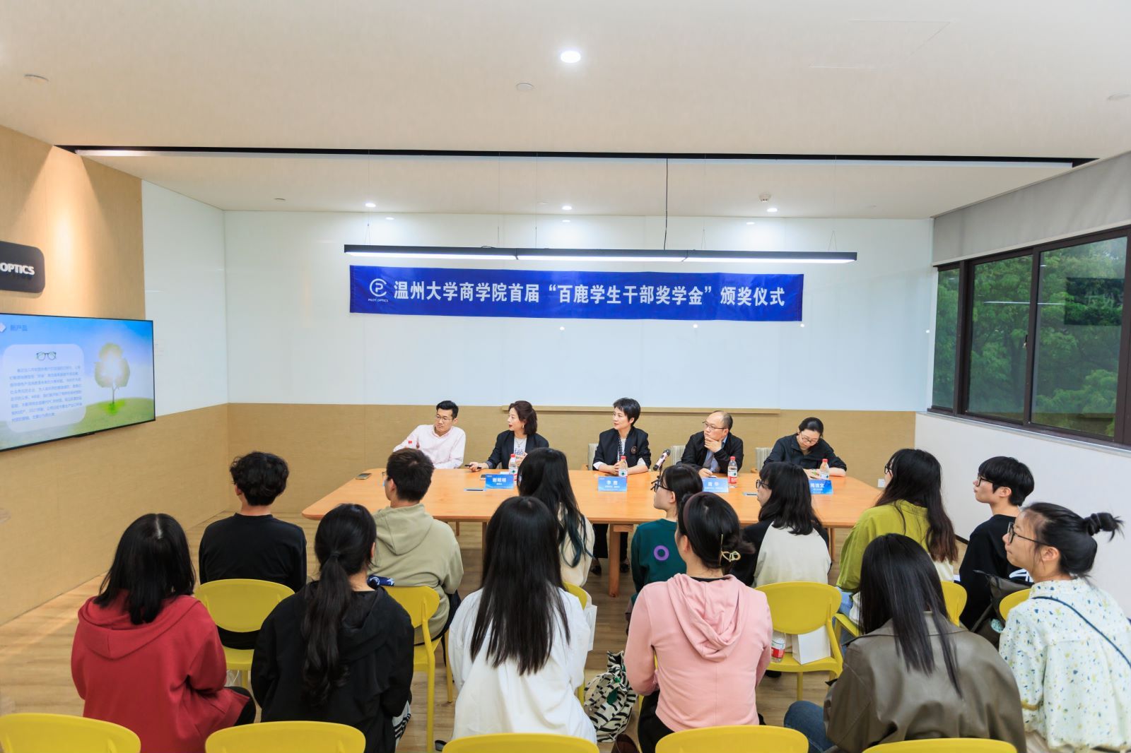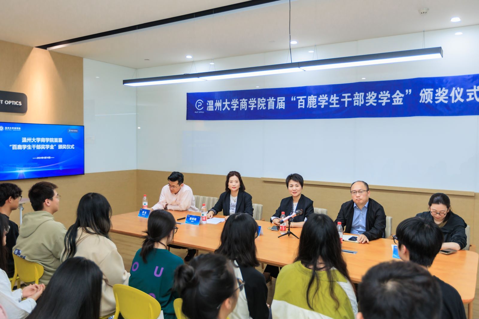 为发挥优秀员工的榜样作用,表彰员工干部在公司员工工作中的杰出贡献,4月16日下午,3044永利在百鹿国际贸易有限公司举行了首届“百鹿员工干部奖学金”颁奖仪式。3044永利94外贸员工、温州百鹿国际贸易有限公司董事长谢明明,公司党委书记李密,党委副书记唐华,国贸系主任姜亮,员工科科长周洁文,院研究生会、员工会、党员服务中心指导老师以及获奖员工干部代表等参加了此次活动。