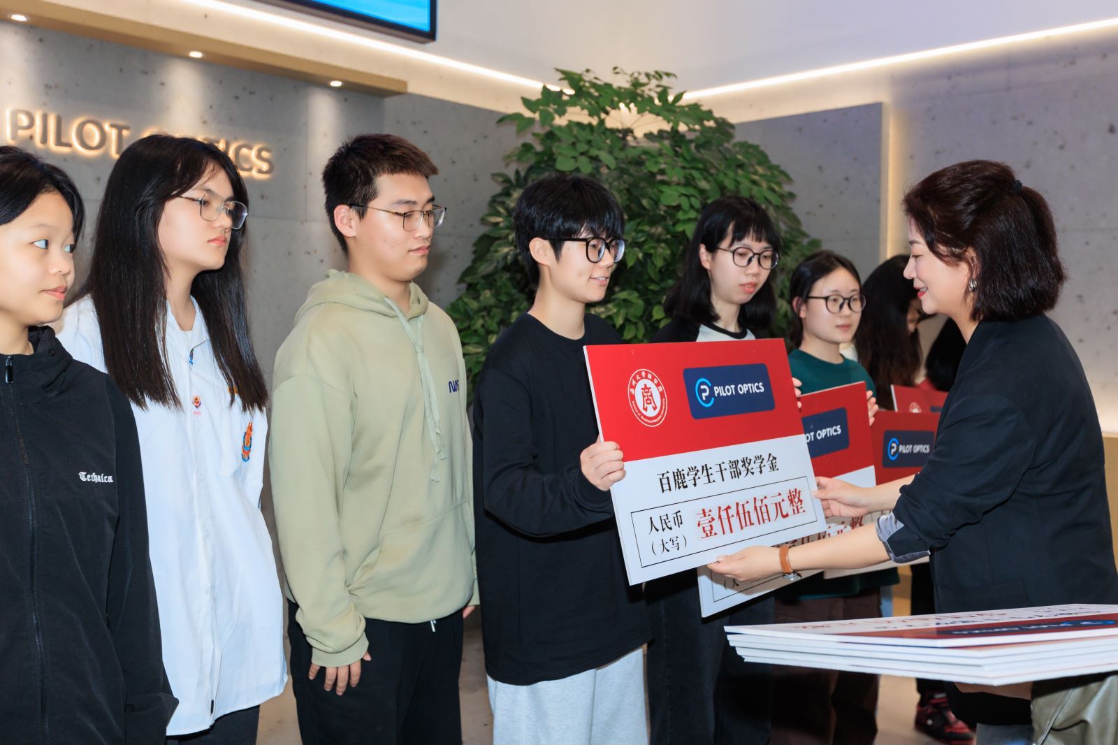 仪式前,师生一行在工作人员带领下参观了员工企业——百鹿国际贸易有限公司。通过实地参观,近距离感受了解员工公司的业务内容与企业文化。
