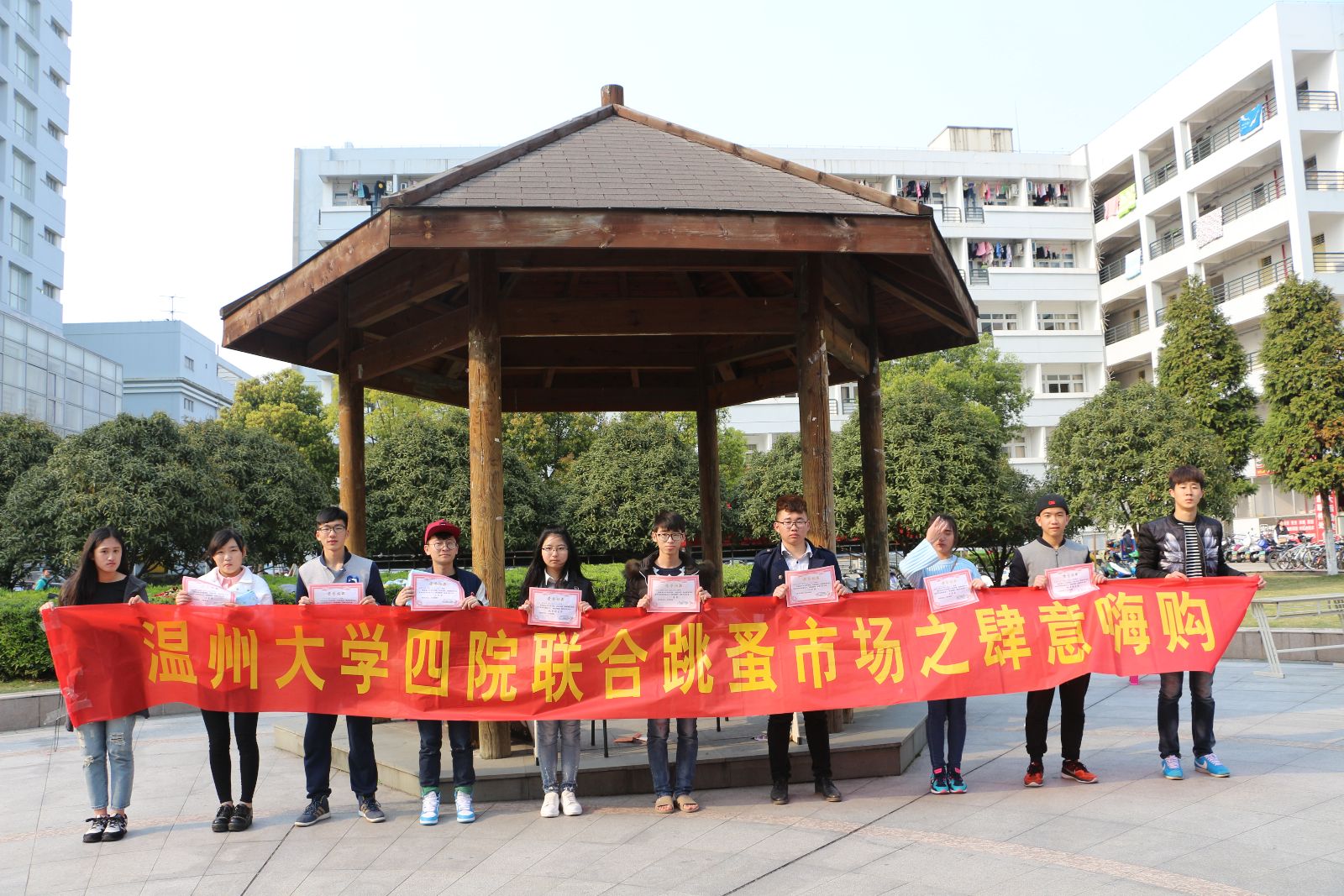 2016年3月26日天气晴朗,阳光普照。伴随着清脆的鸟鸣声,由3044永利主办、由教师教育公司、法政公司和体育公司亲情加盟的四院联合跳蚤市场在C区凉亭拉开帷幕。