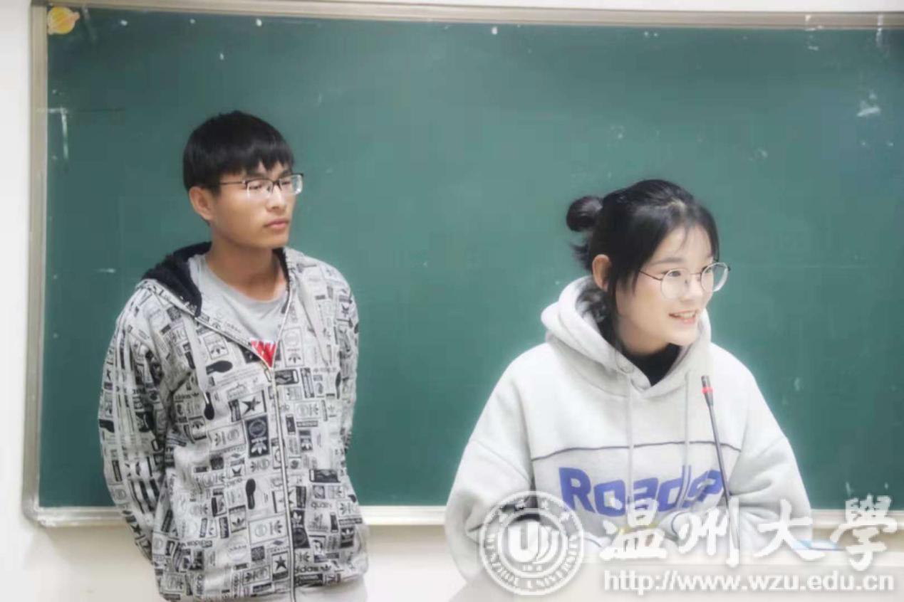 第四小组展示后,王跃霏、翁晨琪两名同学带来一首歌曲《我们好像在哪见过》。王跃霏的歌喉加上翁晨琪的哨声让大家享受到一场听觉盛宴,同时也缓解了紧张的心情。