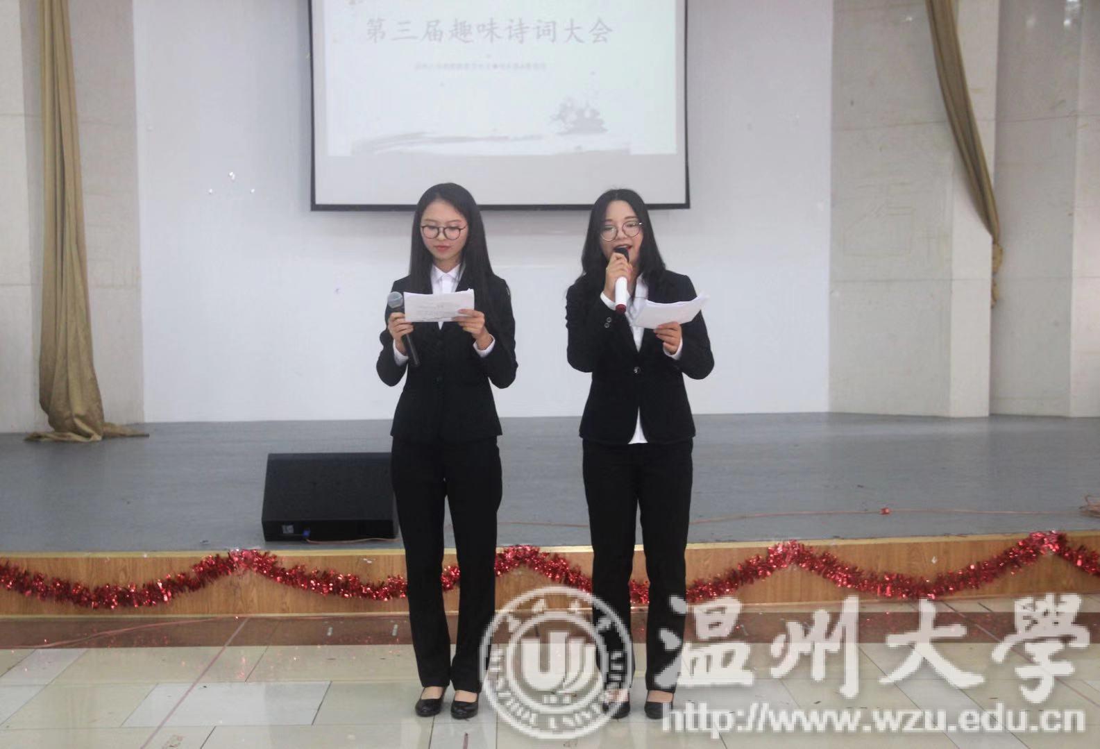 本次大赛参赛队伍共十二组,大赛分五个环节。第一环节是明察秋毫,答题选手需在规定时间内在无序的汉字中组合诗句,本环节各组选手思维活跃,表现都十分出色。第二环节是经典的飞花令,要求各组在规定时间内说出尽可能多的带有给定字的诗句,这一环节在很大程度上,考验的是选手的文学储备。第三环节是全新活动—诗词大爆炸,采取踩气球的方式决定答题顺序,这一环节无论是在踩气球还是答题部分,各组均表现得十分积极。紧接着是你画我猜,每组负责画的人将诗句呈现在纸上,负责猜的人根据画说出诗句。最后一环节是风险投资,各组可自选难易题,由于难易题分数差大,有些组通过优异的表现在最后一轮成功翻盘。经过五轮紧张比拼,最终古越龙山队获一等奖,粉红凤凰花凤凰队和红鲤鱼与绿鲤鱼队获二等奖,三只松鼠队,冬至吃汤圆还是饺子队与打破砂锅问到底队获得三等奖。