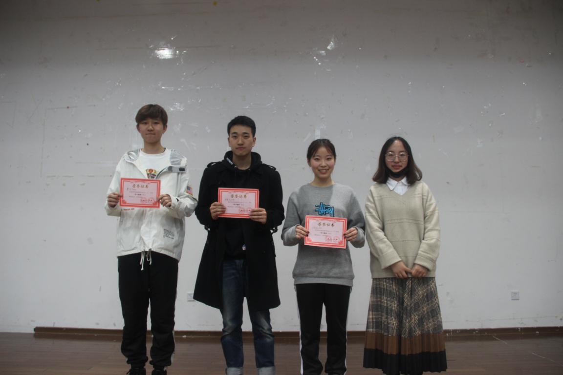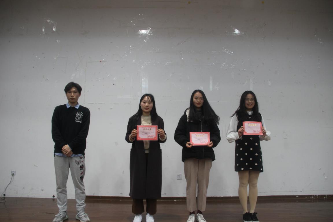 本次评比由办公室的小干事董大靠同学和王俊瑜同学主持开展。首先进行的是星级部门评比,承载着部门的信任与期待,部门代表们通过精心制作的PPT以及出色的演讲,沉稳干练地向大家呈现了自己部门的独特风貌,为部门发声。其次进行的是学干精英评比,小干事们借此机会在舞台上尽情展示自己的风采,让大家更加全面地认识自己,也说出了团学每一个成员的心声。借着统计分数的间隙,主席斯琳晓同学总结陈词,她肯定了团学的十四个部门在本学期的工作成果,希望在来年大家能够再接再厉,砥砺前行。最后,由主席斯琳晓同学和团副裴薛勤同学宣读星级部门和学干精英获选名单,并为获选部门和小干事颁发证书。本次评比中,获得星级部门荣誉的有:文体部、办公室和就业部;获得学干精英称号的有:办公室鄂思岑同学、就业部沈嘉斌同学和学风部张嘉诚同学。