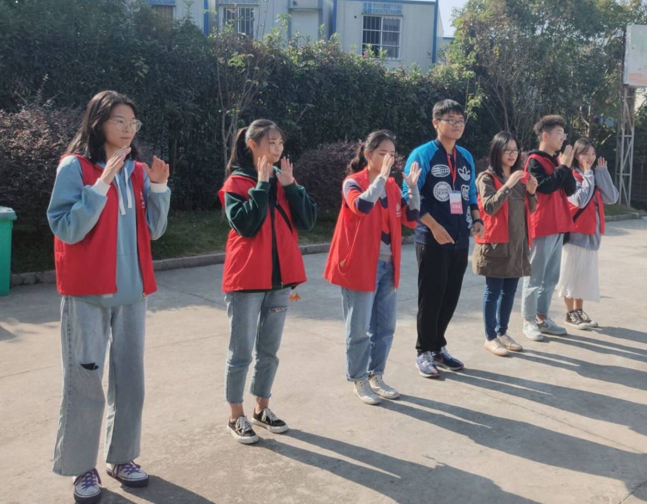 随后在老师的带领下,志愿者们和孩子一起沐浴在午后阳光中,紧接着,七个志愿者表演手语版《感恩的心》,指尖的摆动里有着对他们经历的伤痛,但更多的寄寓着美好的祝福。“天地虽宽,这条路却难走”道出了孩子的困境,但大家相信上帝为他们关上了一扇门,也必定为他们打开一扇窗。新疆同学带来了欢快的舞蹈带动了全场的氛围。蓝经灵和小朋友们一边聆听歌曲《晴天》和《夜空中最亮的星》,一边打节拍。最后以柔美的舞蹈《时间都去哪儿了》结尾。部分志愿者带孩子玩一二三木头人,暖阳微风伴着大家的欢声笑语。