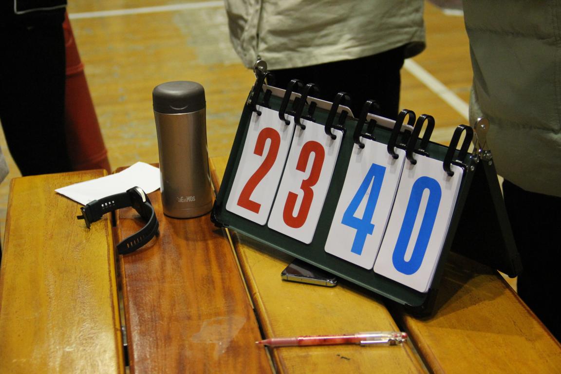 裁判的一声哨响拉开了比赛的序幕,18金工1首先抢到了球,队员们配合着传着球,当球落到0号手中后,他一个三步上篮,球进了!一开场,18金工1篮球健儿的强大气势让对方不知所措,乱了阵脚,第一节比赛18金工1就以10∶4的比分拉开了差距。场上篮球健儿们气势如虹,场下的啦啦队队员们也不甘落后,只听呐喊声、加油声阵阵,仿佛要震开篮球馆的天花板,这些加油呐喊是运动员们的强心剂。在啦啦队的呐喊声中,上半场比赛18金工1以17∶9的大比分领先。经过两分钟休息后,马上开始了紧张的下半场比赛。17市销在第三节比赛中稍显逊色,只进了一个球,但在第四节17市销似乎找回了状态,稳住了阵脚,开始组织起了有效的反攻。但是,随着时间的流逝,双方的体力都在下降,这个时候,谁能控制篮板球,就能控制比赛。关键时刻,18金工1的11号球员牢牢的控制了篮板球,给他们队的进攻创造了机会。最后以40比23的大比分,18金工1班取得了这场比赛的胜利。