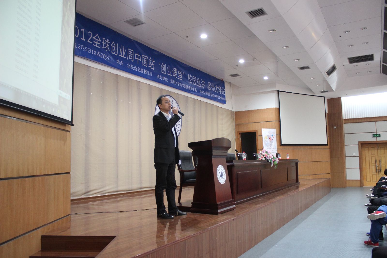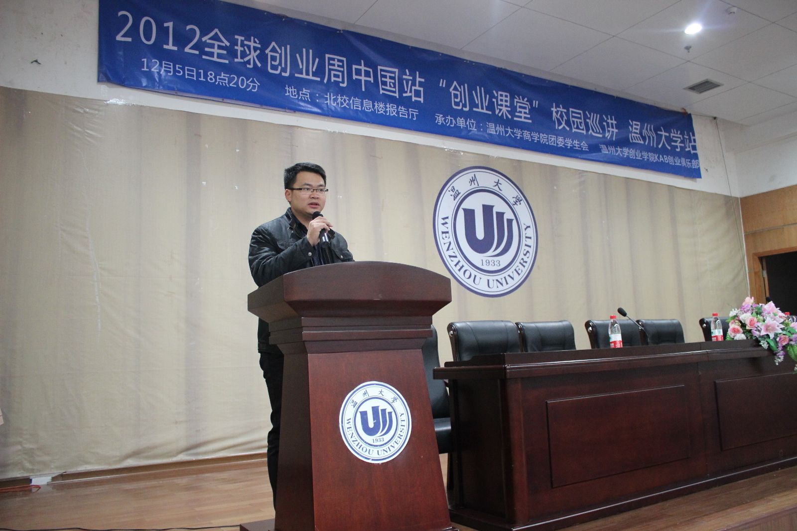 2012年12月5日18点20分,北校信息楼报告厅举行了2012年全球创业周中国站“创业讲堂”校园巡讲活动,本次活动邀请了著名企业家朱武超为大家做演讲。
