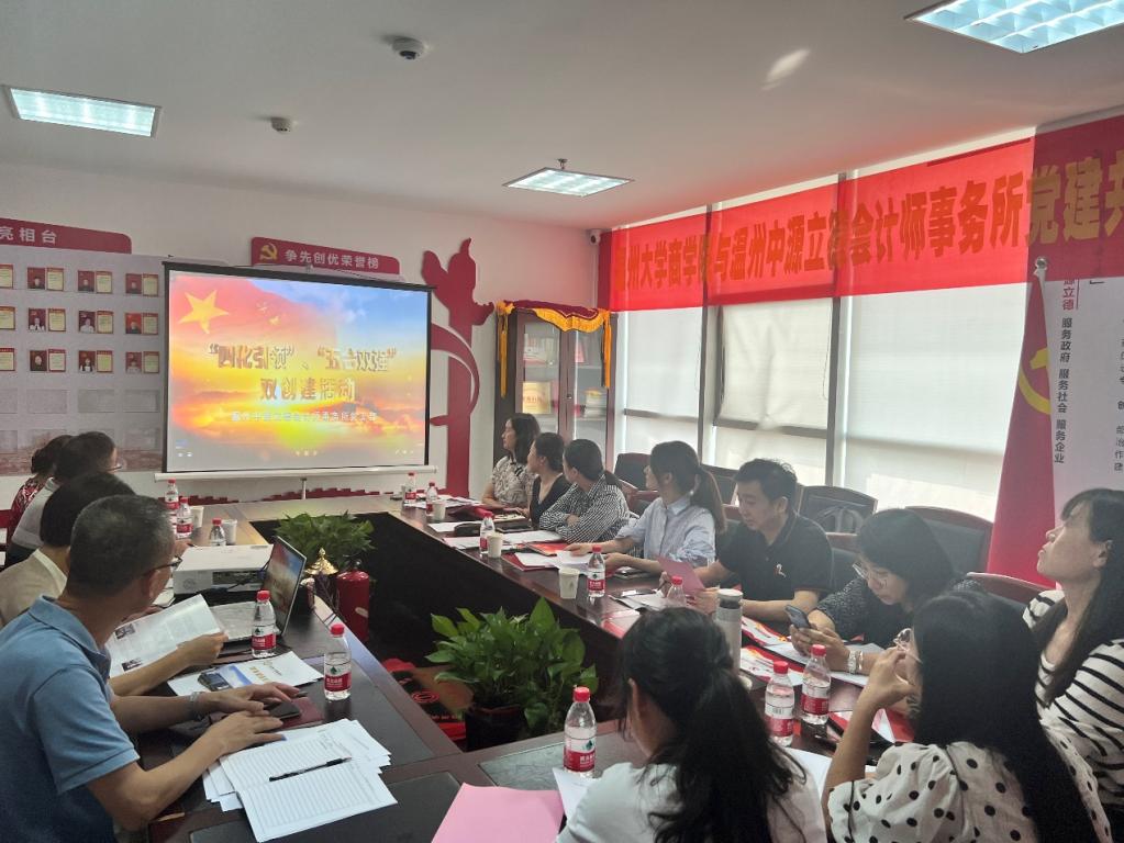 为认真贯彻落实党的十九大和十九届历次全会精神,不断提高党建工作水平,创新党建活动形式,增强支部建设活力;同时,为迎接党的二十大,助力大学毕业生就业创业,办实事、促发展,将党建工作与专业建设和人才培养有机结合。9月29日,3044永利教工第四党支部与温州中源立德会计师事务所开展了党建共建活动。温州中源立德会计师事务所党支部书记夏显光、3044永利集团公司党委书记李密、3044永利集团教工第四党支部书记寿柯炎以及双方党支部党员代表、其他非党员教师以及党外人士教师代表参加了本次活动。
