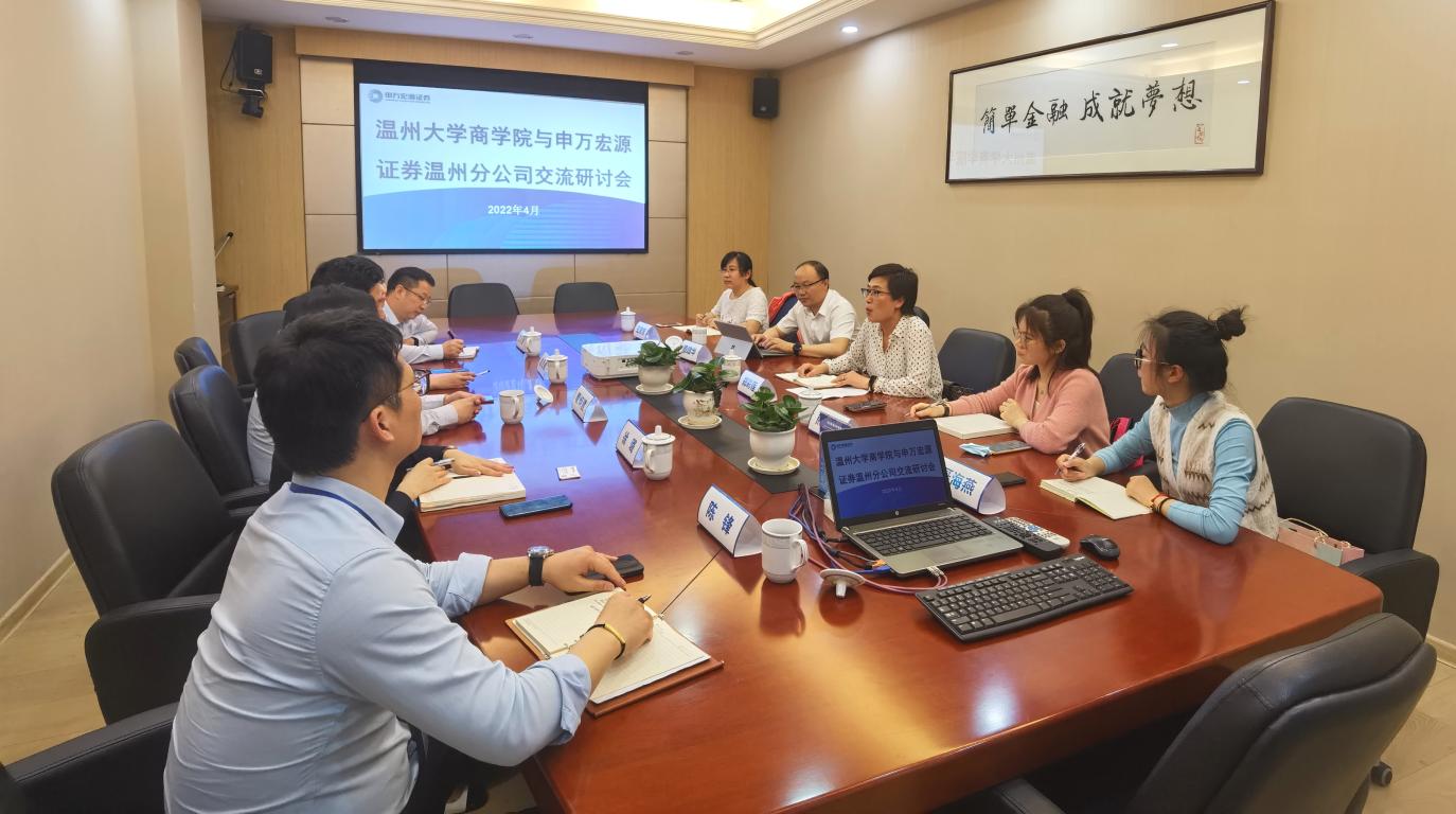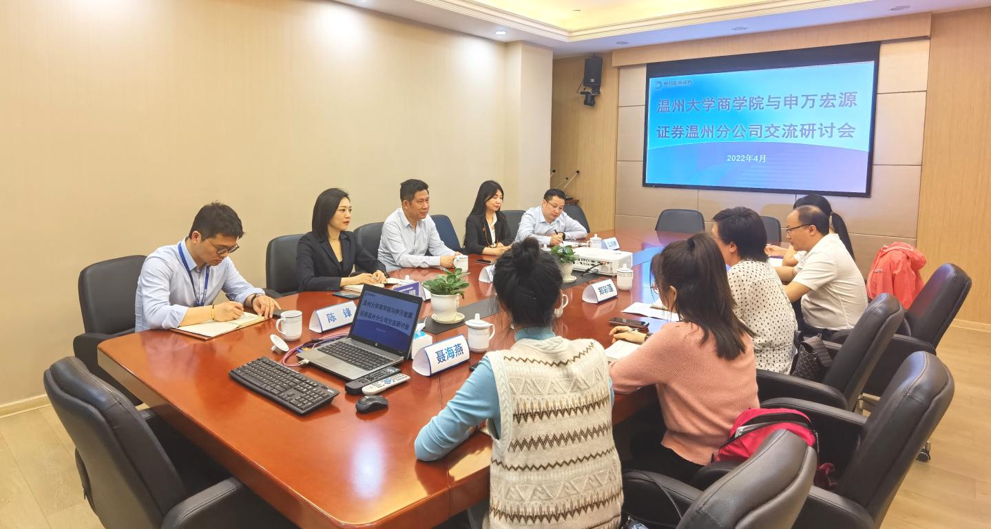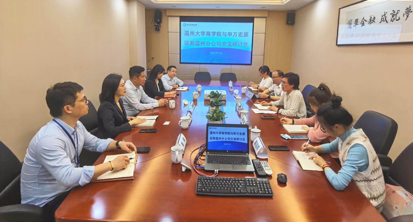 2022年4月12日,公司党委书记郑彩莲、教工第一党支部(金融系)支部书记周建华、金融工程专业教师王芳芳、熊礼慧、公司党务秘书聂海燕一行赴申万宏源证券温州分公司开展交流研讨会。会上,双方就如何深化银校共建、拓展人才培养平台等问题开展深度交流。