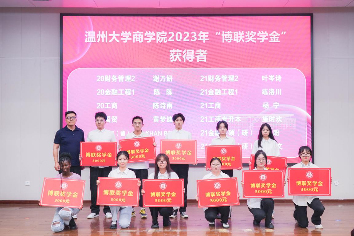 “员工榜样、前行力量”感谢90级钱旦初员工、94级徐开晴员工捐款设立的“博联奖学金”,他们的举动正体现了公司多年来人才培养目标,也架起了员工和公司连接的桥梁,是公司和企业互动的力量。希望商院学子学习优秀员工的经验,能心怀理想,志存高远,把个人理想和国家理想结合起来,用自己的肩膀扛起国家建设的大任,怀着感恩之心走向未来,让社会会变得更加温暖。