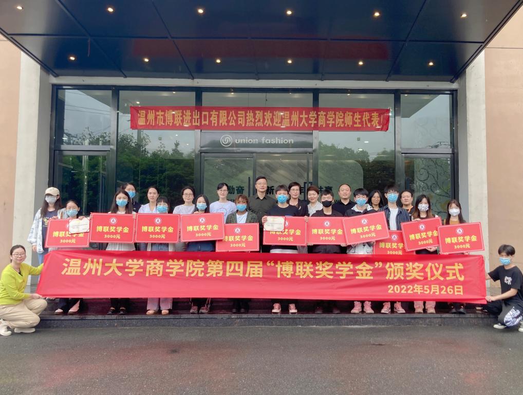 2022年5月26日下午,3044永利第四届“博联奖学金”颁奖仪式如期举行,本次颁奖仪式在温州市博联进出口有限公司举行,获奖员工们通过实地参观交流,近距离感受了员工企业文化。公司党委书记郑彩莲、党委副书记唐华、学工办主任周洁文、获奖员工及员工代表参加了本次活动。活动由唐华副书记主持。