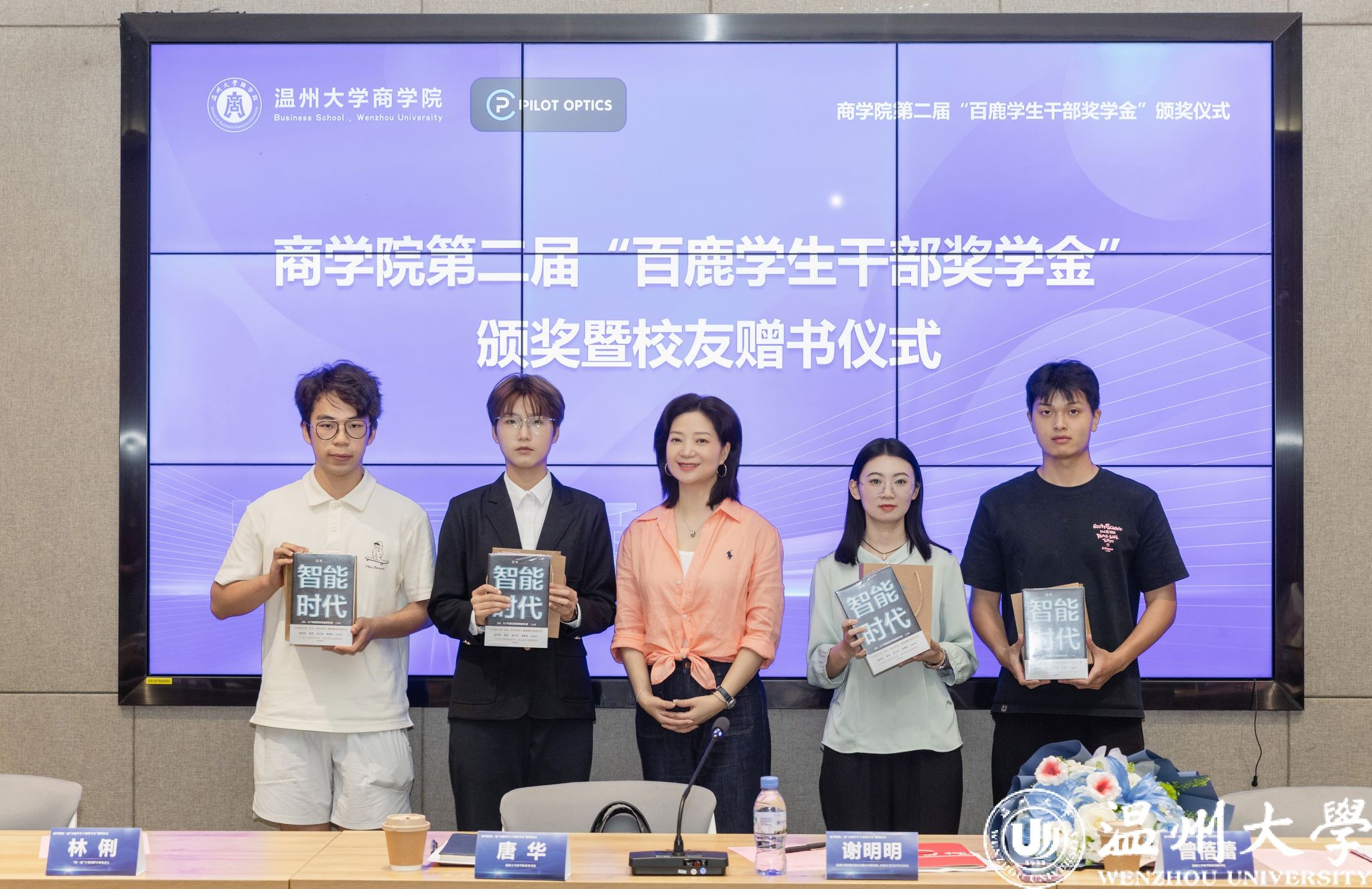 “百鹿员工干部奖学金”颁奖仪式上,谢明明员工为获奖的员工干部们逐一颁奖。同时,她精心为每位同学们准备了书籍《智能时代》,勉励学弟学妹们既要深耕员工工作,在服务中锤炼本领,更要保持学习敏锐度,主动拥抱智能时代的机遇与挑战,让青春与时代脉搏同频共振。