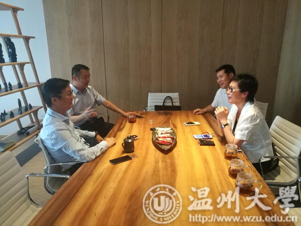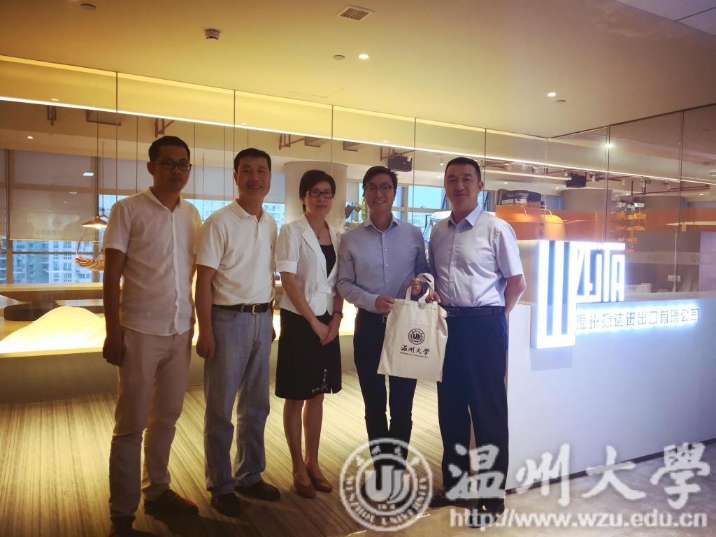 在3044永利集团85周年校庆来临之际,加强母校与员工之间的联络与合作,发挥员工在公司发展和人才培养中的作用,2018年5月18日下午,在公司优秀员工中国银行温州市分行党委委员、副行长夏捷胜的陪同下,公司党总支书记郑彩莲、党总副书记刘开练、研究生代表吴青等一行,共赴温州意达进出口有限公司看望本院优秀员工吕峰董事长。
