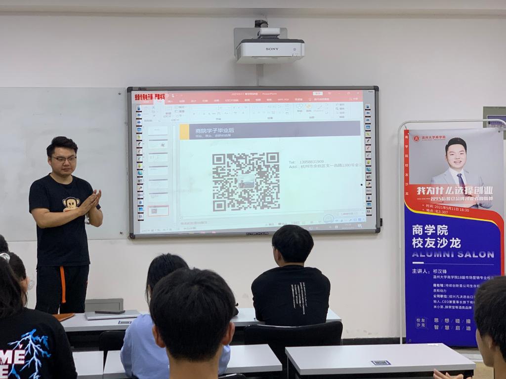 从大三开始创业,到毕业后放弃阿里年薪40万的offer,再到毅然创立自己的公司和品牌,祁汉锋员工和大多数90后一样,敢想敢闯敢拼,用四年时间,做到了营业额过亿、自有品牌广告投放过3000万,做到了旗下两个果酒一个黄酒TOP10品牌、并赋能传统酒厂从破产到过亿……都说温大人“敢为人先”,祁汉锋身上的这股精神可谓体现地尤为明显,而他的故事同样也深深吸引着在座的每一位同学。