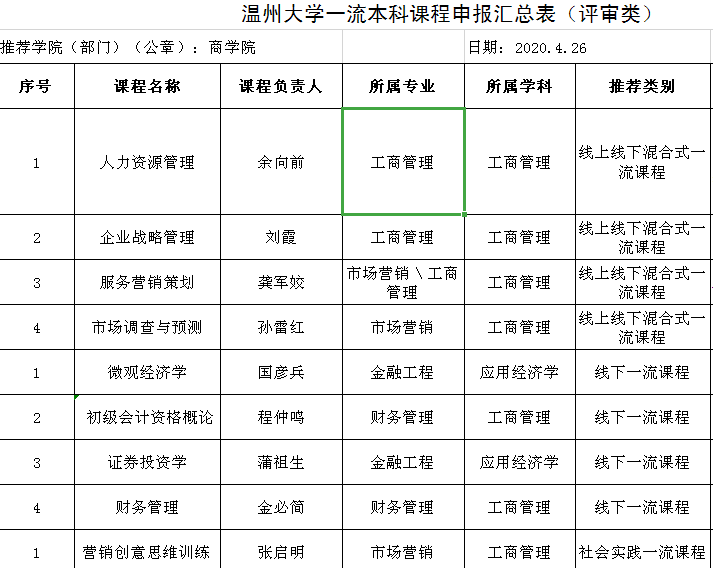 根据《关于启动2020年3044永利集团一流本科课程申报建设工作的通知》要求,经教师申报、公司审核推荐、专家评审、公司教学委员会审议等环节,决定推荐马媛老师和罗军老师的课程为备案类一流课程,余向前老师等9位老师的课程推荐到公司参与一流课程评选,具体课程信息如下,公示时间为(4月26-4月28日),如对公示结果有异议请联系教务科徐老师,电话668884。