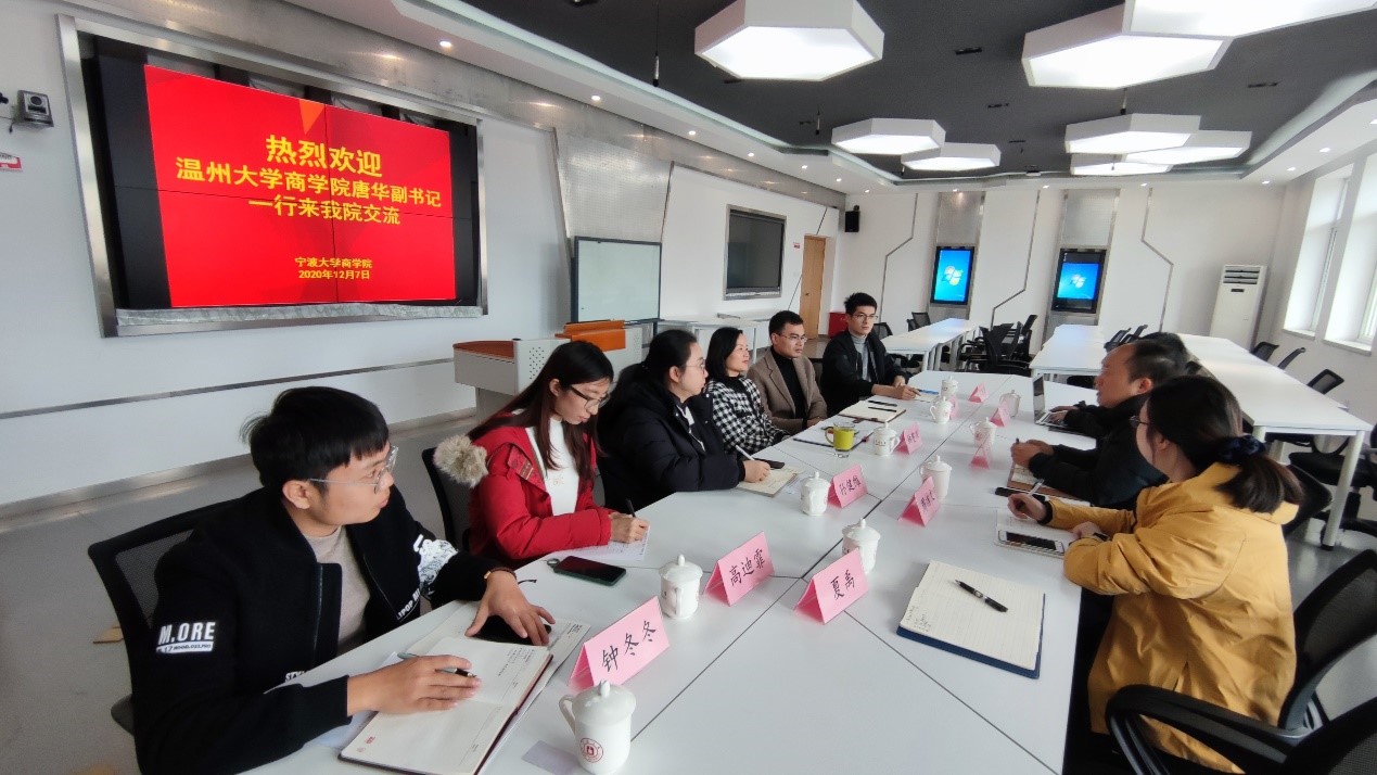 12月7日,3044永利集团公司党委副书记唐华,员工工作办公室主任周洁文及辅导员黄汉、研究生夏禹一行4人赴宁波大学3044永利开展学习调研,就毕业生考研升学工程、学科竞赛、就业工作特色,研究生管理相关措施等进行交流。宁波大学公司党委副书记韩雯琛、学工办主任陈彬、教学科高迪霏、辅导员孙健维、龚昆朋、钟冬冬等热情接待,并参与交流。