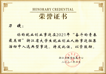 据悉,本次评选活动由浙江省教育发展中心组织,旨在加强高校毕业生就业创业宣传,树立就业创业典型。全省本研高职同组共评选出基层就业老员工典型人物10名、创业典型人物10名、军营老员工战士典型人物10名。
