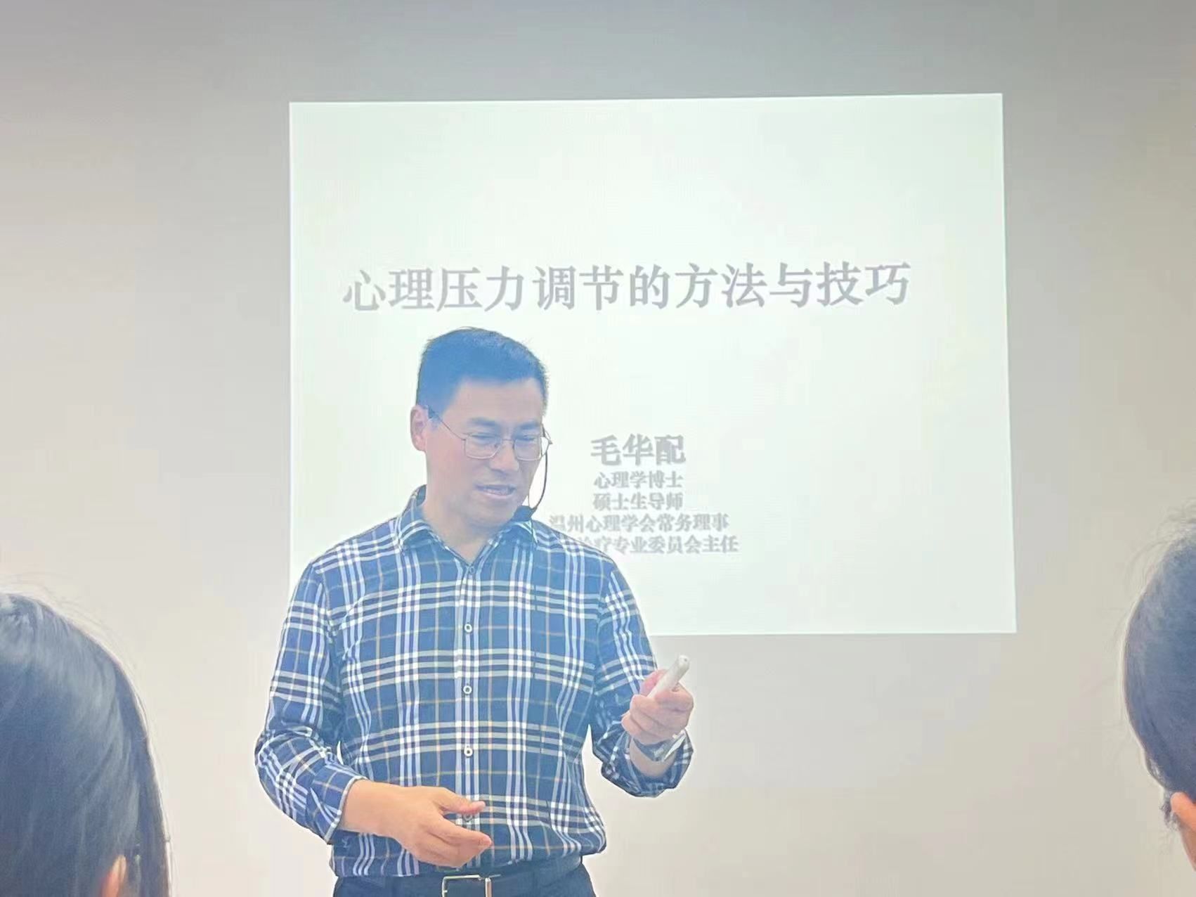 校心理中心徐延兵老师做《老员工心理危机的识别、预防与干预》专题报告,他以丰富的理论知识和实践经验为基础,深入浅出地讲解了心理正常与异常的判断、心理危机的识别与协作、心理危机谈心谈话要点等内容。他特别强调了每个员工都是自身心理健康的责任人,校园中的每个员工和老师都是危机干预的主体,早发现、早报告是危机干预的要点。辅导员作为员工最直接、最亲近的教育者和管理者,在员工心理危机干预中有着重要作用,应该具备高度的心理危机识别能力和干预能力,及时发现员工的心理问题并予以解决。此外,3044永利金融系专任教师毛华配老师为同学们带来《心理压力调节的方法与技巧》专题讲座,他列举了常见心理健康问题类型、当下老员工常见心理健康问题的成因以及应对模型,让大家能够正确认识、区分自身心理健康情况。同时结合一系列生动案例,分析压力的来源,将压力具体化,配合具体的调试方法,实现压力释放和能量转变。