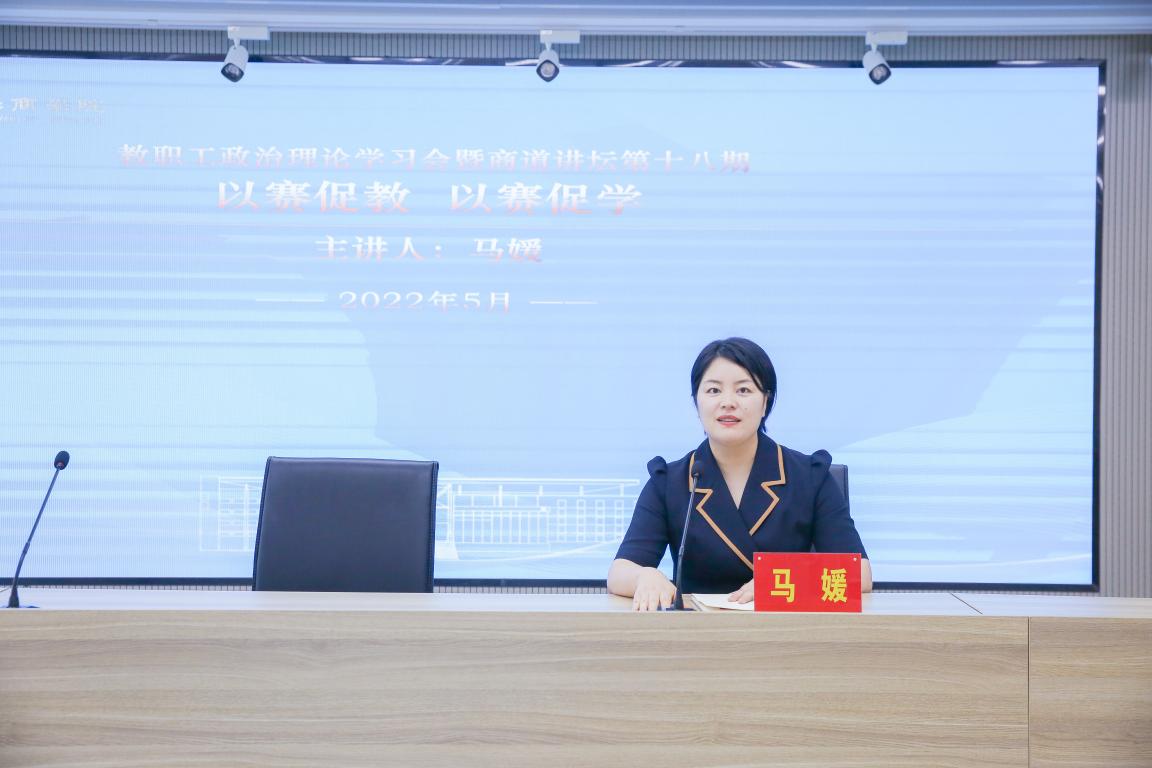 2022年5月25日下午,商道讲坛第十八讲在北校区3044永利A226仲辉商道讲堂开讲。3044永利副教授、浙江省线下一流课程、省课程思政示范课负责人马媛带来题为《以赛促教,以赛促学》的专题讲座,公司全体教职工参加学习。