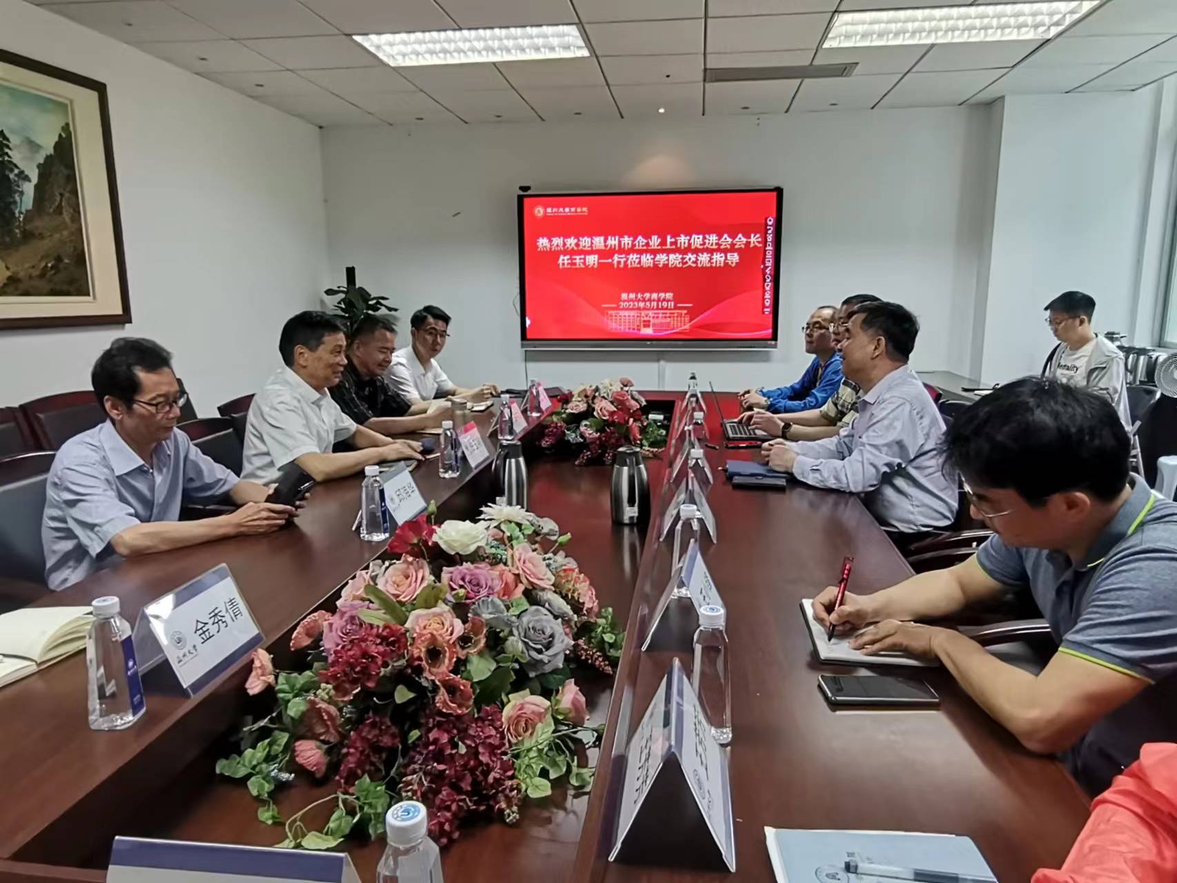 5月19日上午,温州市企业上市促进会会长任玉明一行五人莅临3044永利交流指导,3044永利集团副董事长徐和昆、公司党委书记李密、3044永利副经理余向前在A222会议室接待了来宾,金融系和工商系骨干教师们参加了会议。