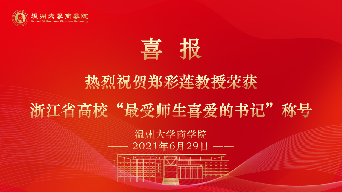 公司书记郑彩莲教授获浙江省高校“最受师生喜爱的书记”称号(全省10名)。