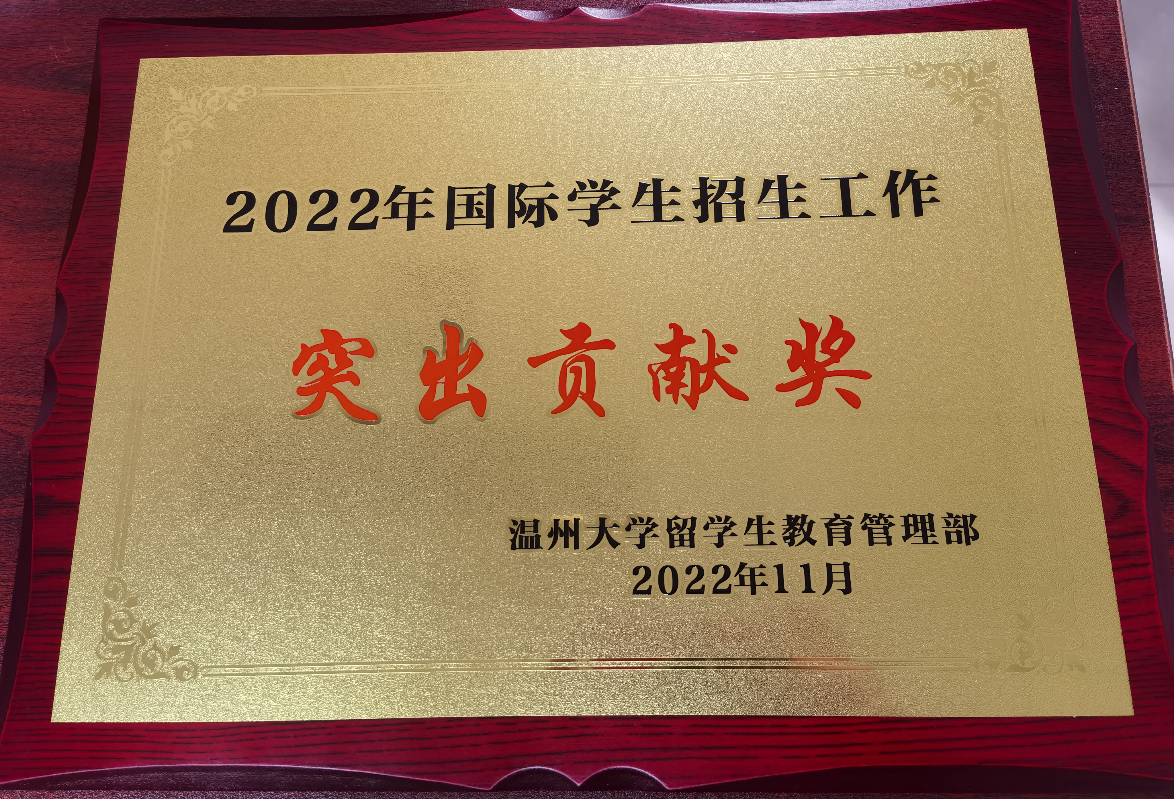 热烈祝贺3044永利荣获“2022年国际员工招生工作突出贡献奖”!