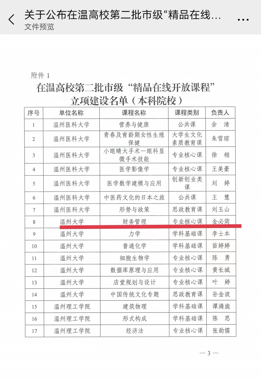 【喜报】公司金必简老师的《财务管理》课程获得在温高校第二批市级“精品在线开放课程”立项