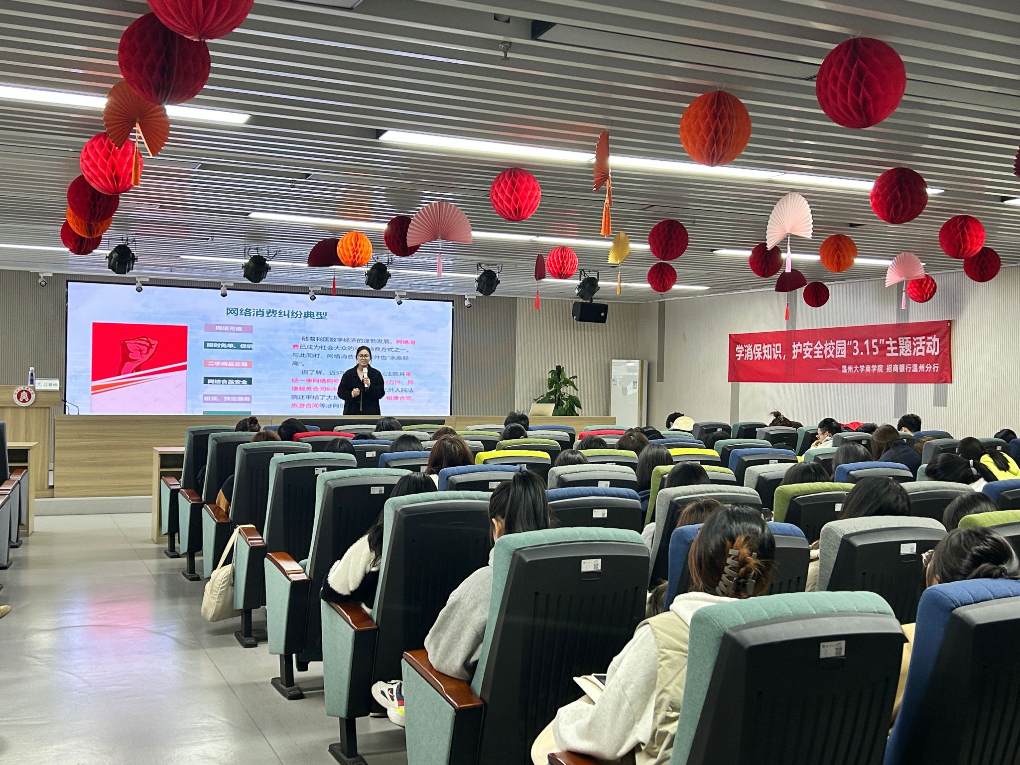 协会在公众号上发布了《关于“3·15国际消费者权益日”的倡议书》,并在公司金融教育基地(浙江省金融教育示范基地)展示厅的电子大屏播放宣传视频,呼吁全院师生强化权益保护意识,不断提升消费者权益保障水平。