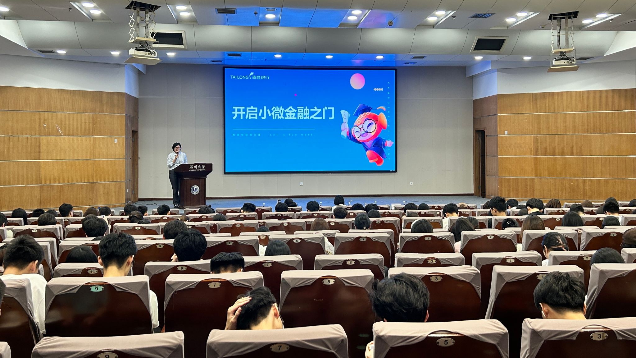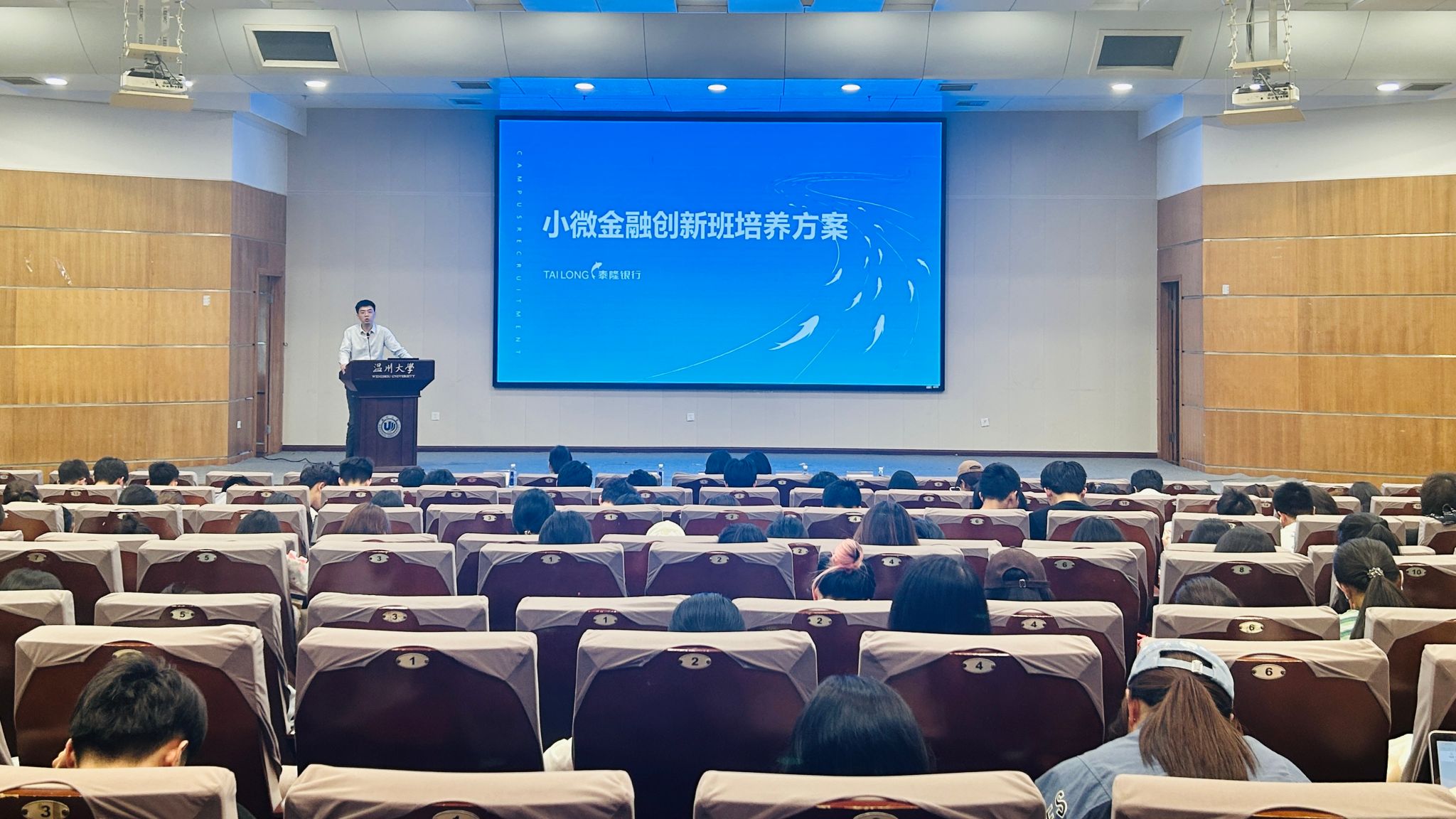 最后,泰隆银行人力资源部吴捷达先生介绍了公司与银行合作的小微金融创新班培养方案,包括“唯贤不唯资”的人才理念,以及从创新班到实习再到入职全方位立体化的福利体系,展示了泰隆银行对于员工的人性化关怀,打消了同学们的“后顾之忧”。