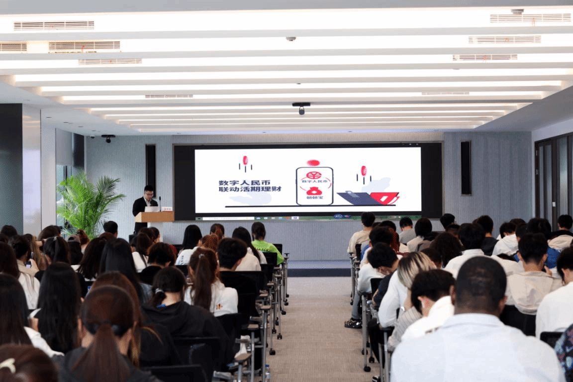 在金融知识学习环节,为让3044永利员工更加深入了解金融知识,分行同时还特别为120余位金融工程系老员工量身定制了一堂金融知识讲座,讲座以数字人民币为主题切入数字钱包、个人身份识别、账户交易金额限制等金融科技知识,为员工深入浅出地介绍了数字人民币的应用、前景以及招行的数币产品。专业的内容介绍让员工们学到了课本以外的知识,课程最后还由温大英语老师王博士对学习内容进行了总结性的介绍。