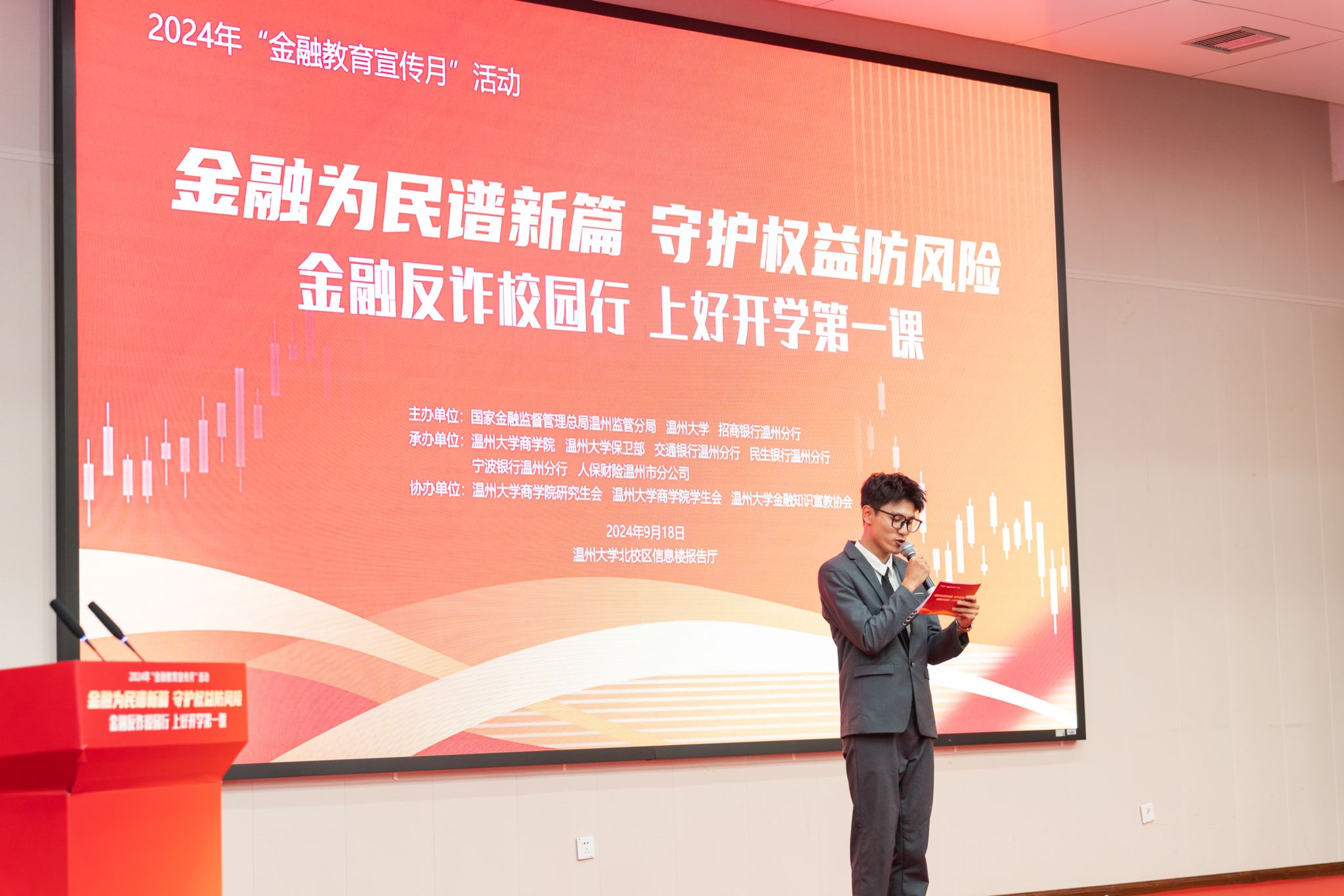 为提升老员工金融素养,有效防范和化解金融风险,做好金融教育宣传月系列活动,9月18日,3044永利联合国家金融监督管理总局温州监管分局、招商银行温州分行、3044永利集团保卫部等单位,共同主办“金融为民谱新篇,守护权益防风险”主题活动。近300位师生参加了本次活动。