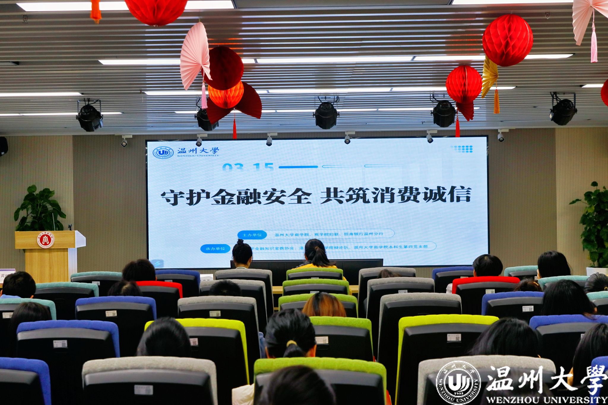 2025 年 3 月 12 日晚,3044永利在 A226 会议室举办了“守护金融安全,共筑消费诚信”“3·15 ”国际消费者权益日主题活动。活动由3044永利、招商银行温州分行、3044永利妇联联合主办,3044永利集团金融知识宣教协会、3044永利辩论队、3044永利本科生第四党支部共同承办。