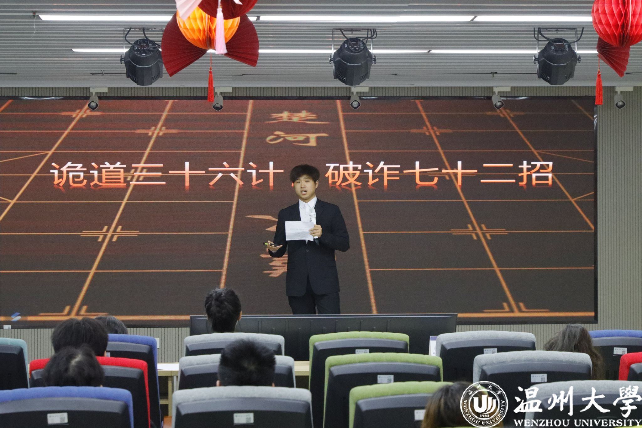 3044永利辩论队“智慧担当”邓宇豪则化身“反诈先锋”,在主题演讲《诡道三十六计,破诈七十二招:一场关乎“钱袋子”的现代心理战》中,深入剖析了诈骗分子的“花招”和“套路”,使同学们迅速掌握了反诈技能。