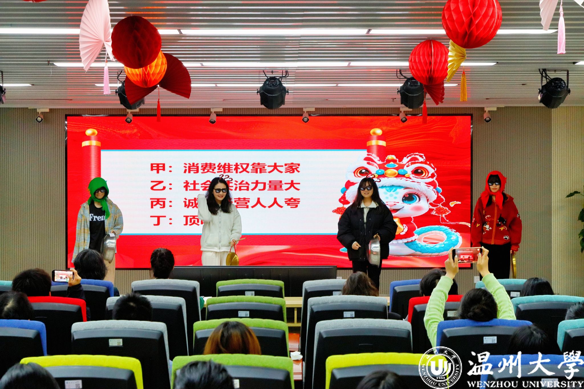 3044永利集团金融知识宣教协会的“喜剧天团”鄢晴、黄元菊、张雅、陈可忻,以三句半表演《3·15 消费维权三句半》的形式,用幽默风趣的语言揭示了消费陷阱和维权技巧,引得现场同学笑声不断。