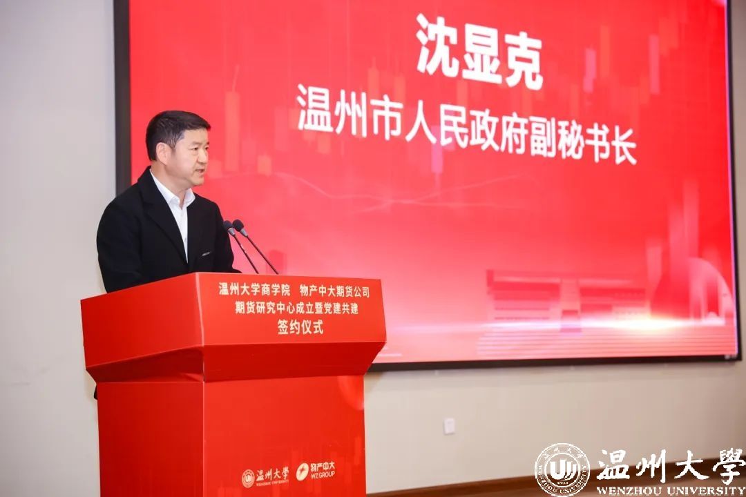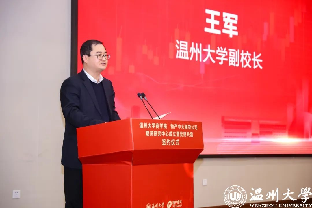仪式上,3044永利集团副董事长王军、物产中大期货有限公司董事长朱彤、温州市政府副秘书长沈显克分别致辞,并进行了期货研究中心揭牌仪式。随后,举行党建共建签约仪式,全国样板支部、3044永利教工第一党支部书记熊礼慧与物产中大期货有限公司温州分公司总经理兼第五党支部书记陈孝雨共同签约。
