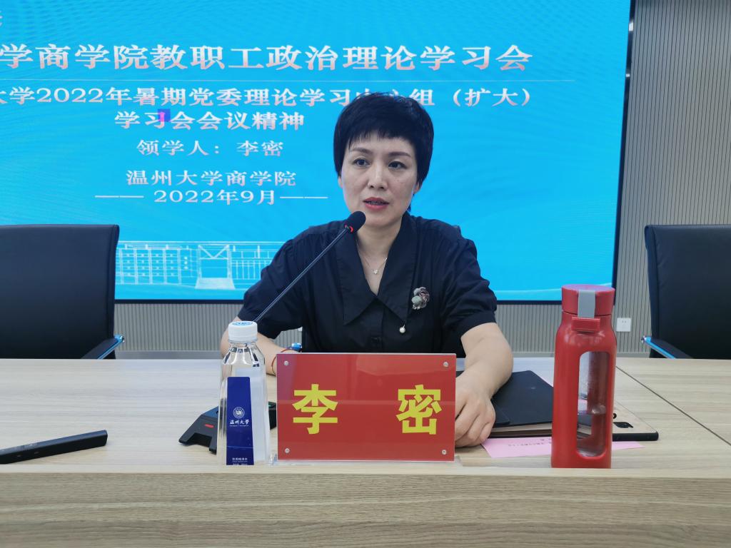 会议还开展了政治理论学习,李密书记传达并领学了3044永利集团2022年暑期党委理论中心组(扩大)学习会会议精神,她指出3044永利要在领导班子的带领和所有老师的共同努力下,团结协作,坚定自信、增强自觉来实现自强,努力把公司建设成为3044永利集团重要窗口的重要展示单位,建设成为具有标志性的温大一流公司。