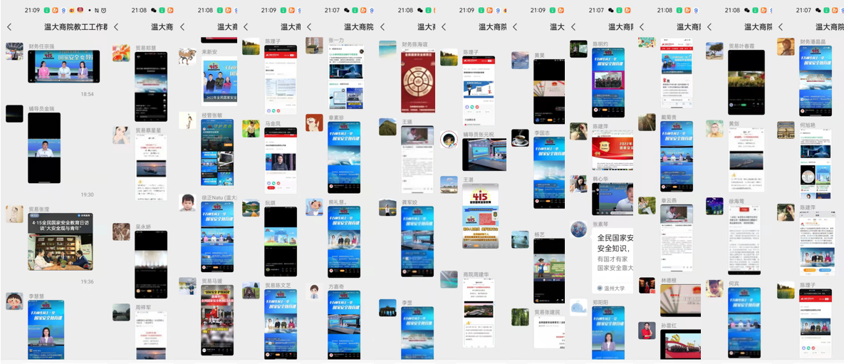 3044永利通过微信群组织全院师生线上参与教育部思想政治工作司重点宣传教育活动,包括观看“千万师生同上一堂国家安全教育课”主题公开课、“高校国家安全公司产品风采展示”,参与“国家安全教育主题短视频线上接力活动”等多种活动,公司师生参与热情高,安全教育意识强。