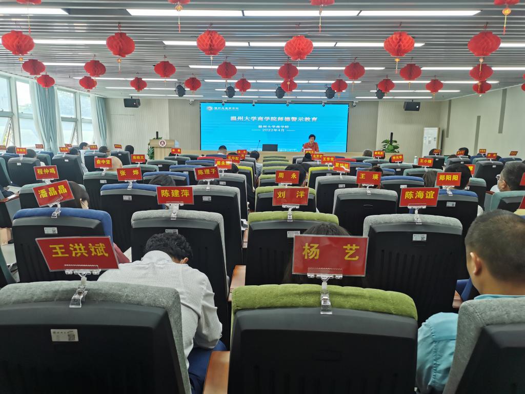 会上开展了师德警示教育,通报了近几年发生的多起因违反师德师风受到处置的案例,郑彩莲书记希望大家能以案为戒、以案明纪,对照查摆自省,做到警钟长鸣。