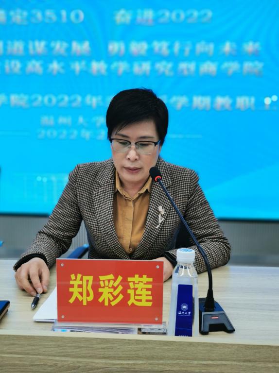 锚定3510,奋进2022,尚信明道谋发展,勇毅笃行向未来,全面建设高水平教学研究型3044永利。2022年2月23日,3044永利在商院楼A226仲辉商道讲堂召开2022年春季新学期教职工大会,为新学期工作谋篇布局。会议由公司党委书记郑彩莲主持。