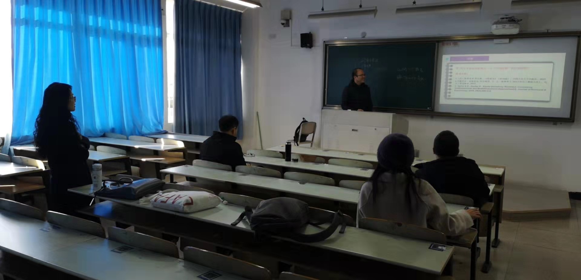 8:20,陈明灼、李慧慧、李国志、刘霞、余向前、张启明六位教师相聚在北3-501教室,本次主角是陈明灼老师,讲授《管理学原理》课程中的“激励理论之公平理论”内容,讲授内容和讲授形式均按照高校课堂教学比赛要求进行。陈老师首先用5分钟左右的时间介绍了激励理论在管理学课程中的地位、学习该理论的目的、授课应达到的目标、重点和难点所在、教学方法;然后用10分钟左右时间介绍激励理论的提出、公平含义及公式、公平感结构、公平理论在企业管理中的应用,其中包括案例引入、员工讨论、重点难点提示、内容总结、作业布置。