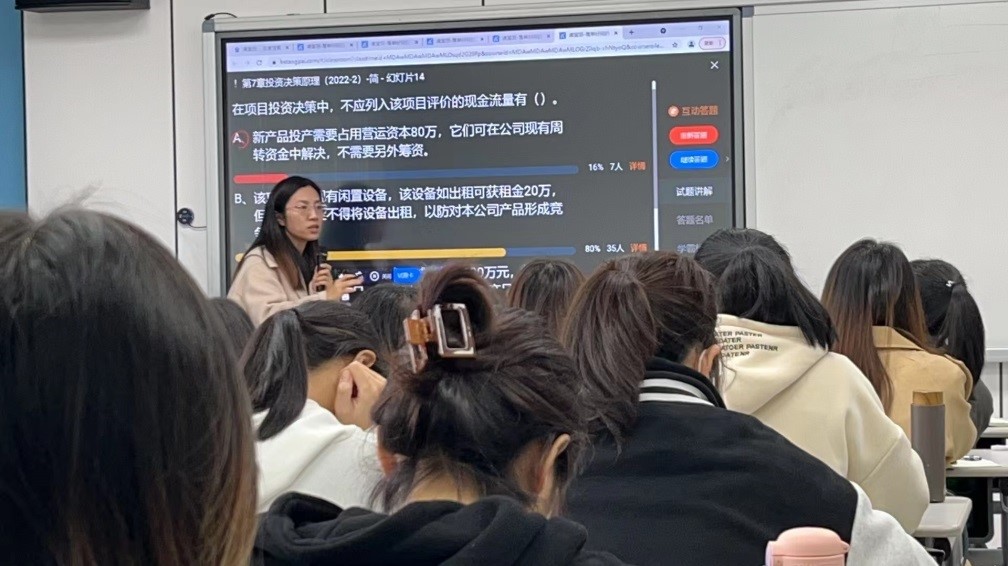 财务管理课程采取课前-课中-课后相结合的线上+线下教学模式。课前,员工需要在课程平台进行签到,课上金老师设计了案例互动环节精讲研讨。课后,课程平台设置了互动和作业检测。
