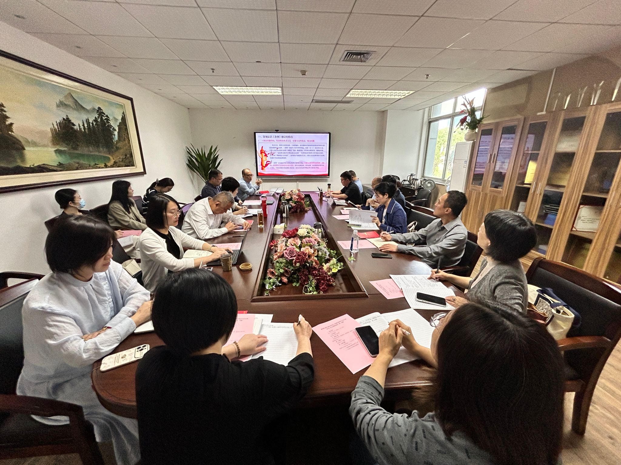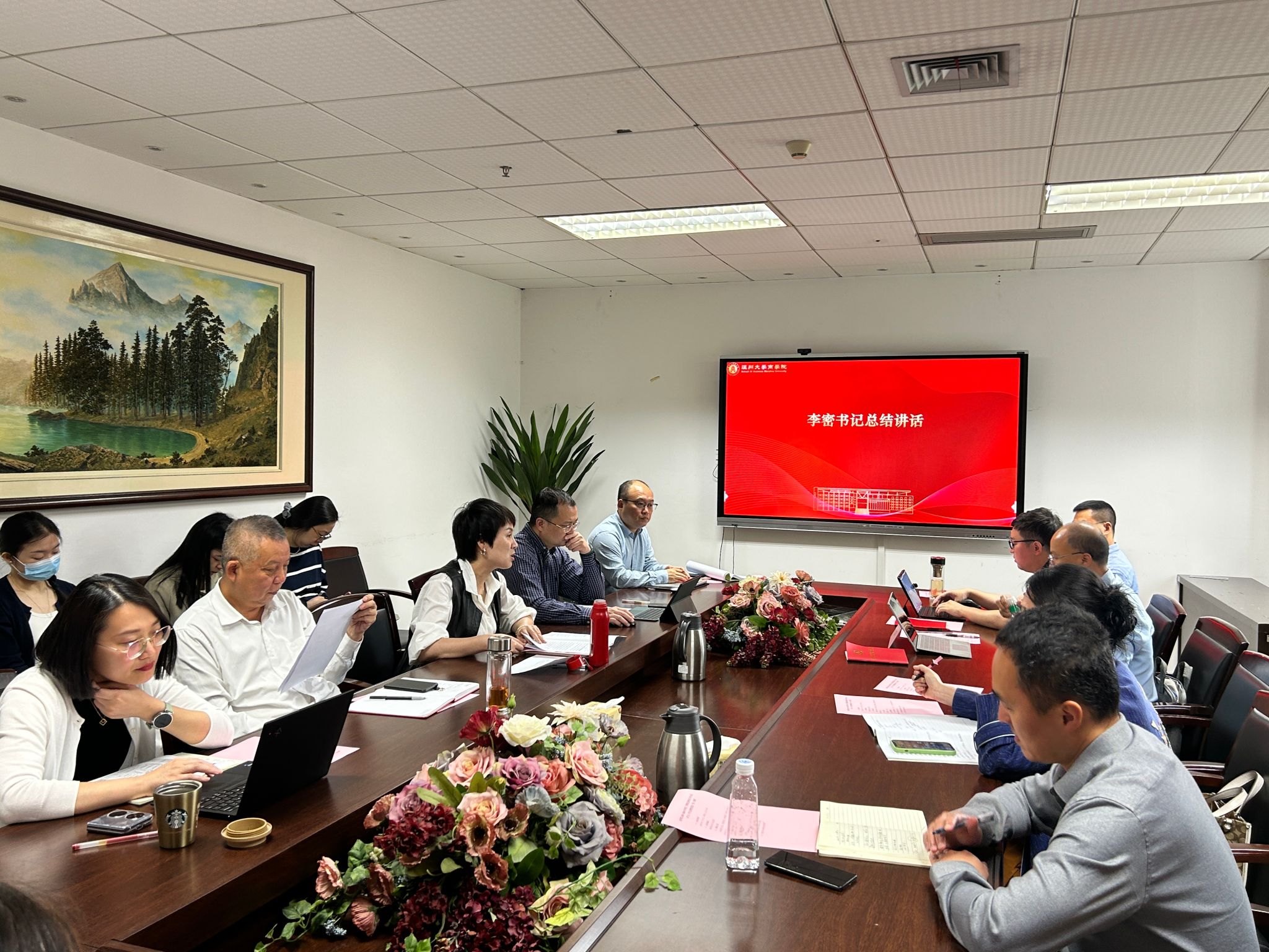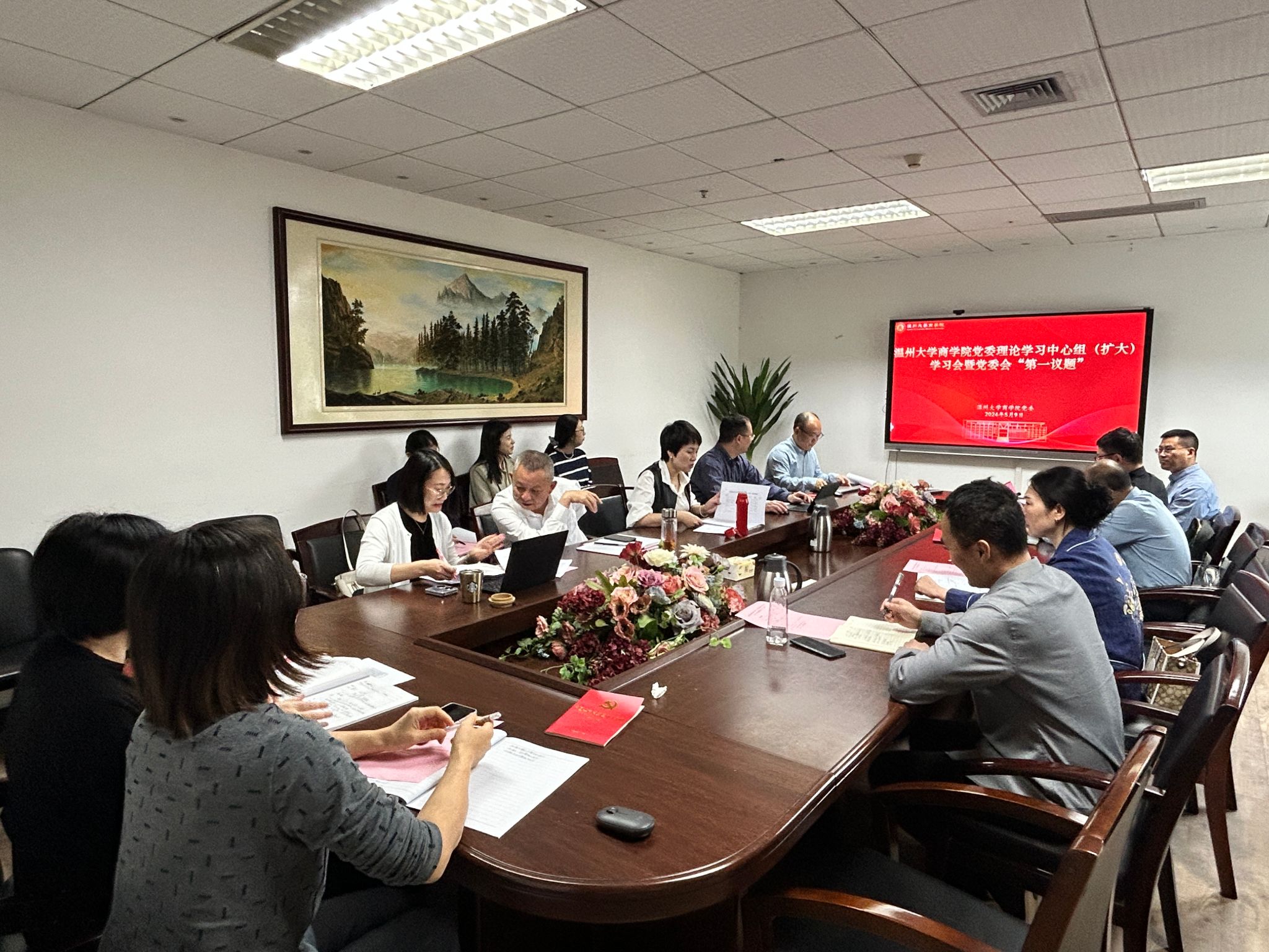 2024年5月9日上午,3044永利党委在A222会议室召开“第一议题”暨2023-2024学年第二学期理论学习中心组(扩大)学习会。会议由党委书记李密主持,院领导班子成员、党委委员、纪委委员、支部书记及各科室负责人参会。
