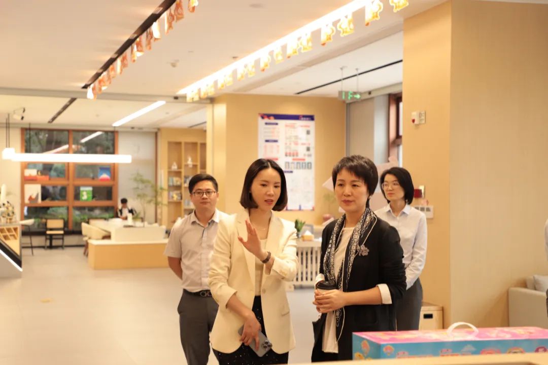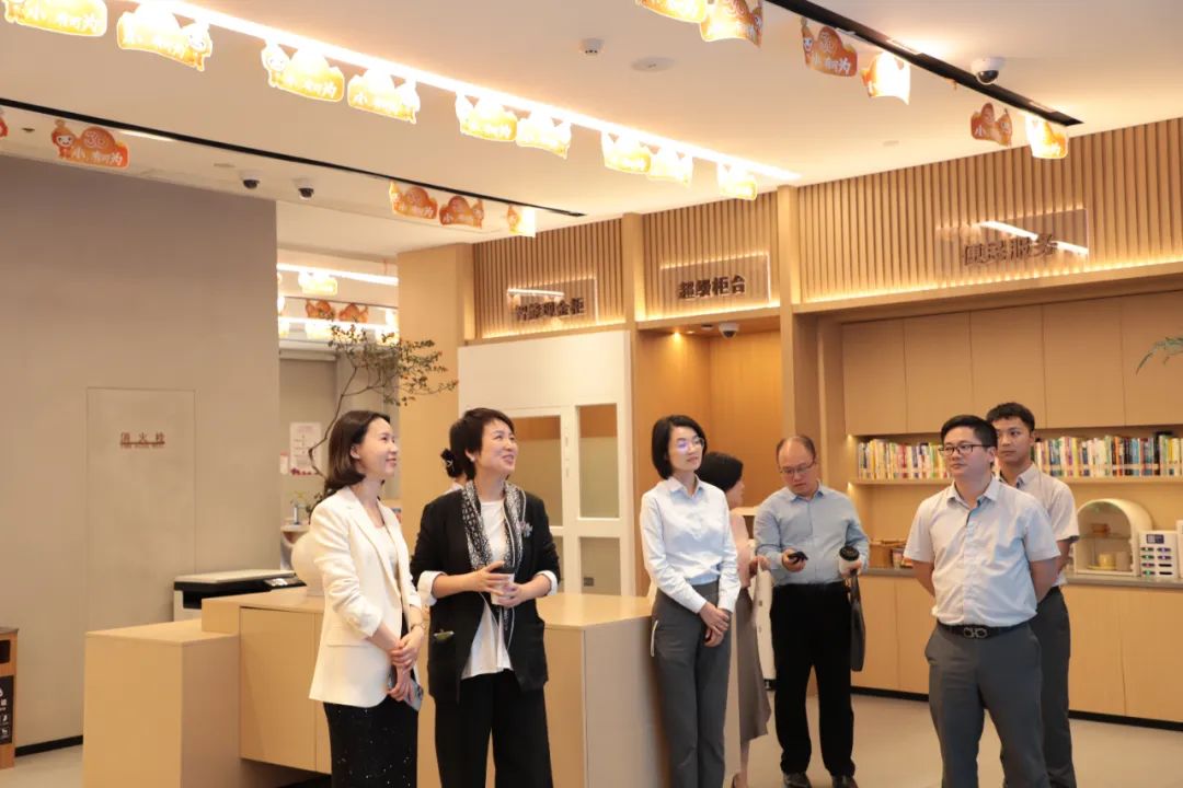 李密书记一行在蒋行长的带领下,实地参观了共享会议室、共享办公区、共享咖啡吧、红色驿站等场地。一行人对泰隆银行超前的战略规划和务实的人才举措表示赞赏,并对双方的银校共建充满信心。