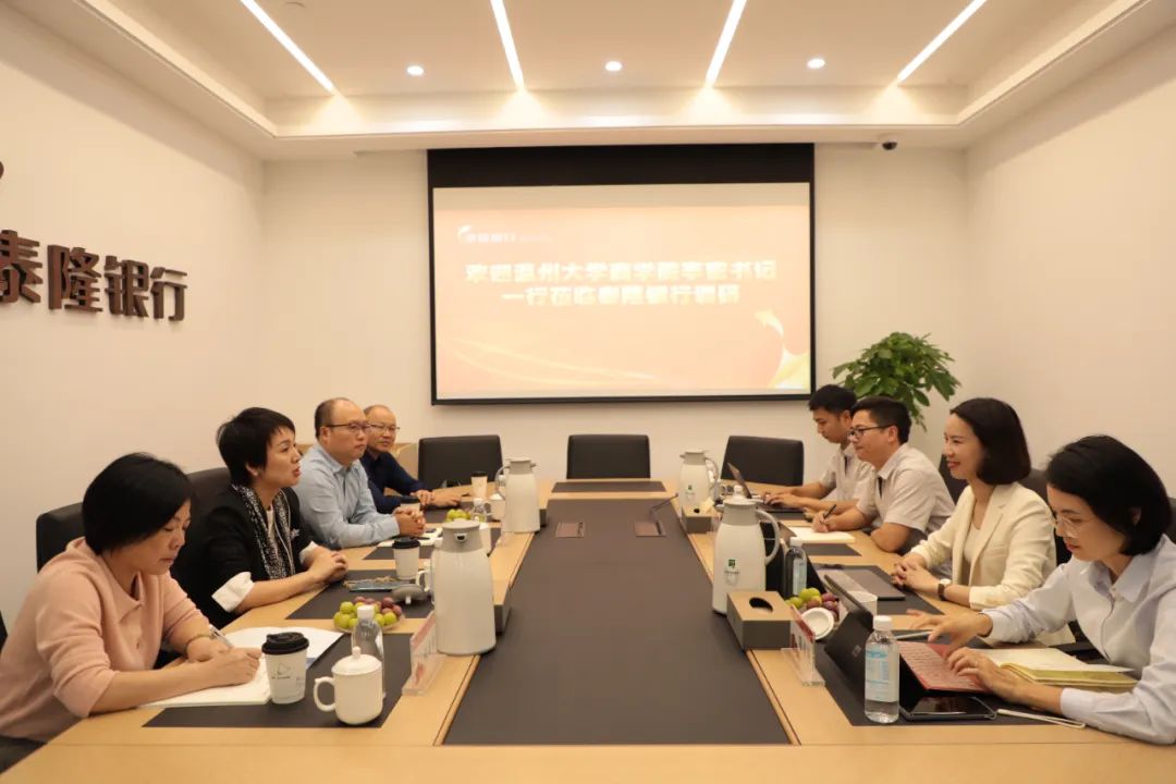 10月8日下午,公司党委书记李密、党委副书记唐华、办公室主任张素琴、工会主席周建华一行走访泰隆银行龙湾支行,双方座谈交流共建“人才之家”。泰隆银行温州分行副行长蒋丽英,办公室主任卢劭炜,人力资源部经理陈贞纯,龙湾支行行长余康康参加座谈。